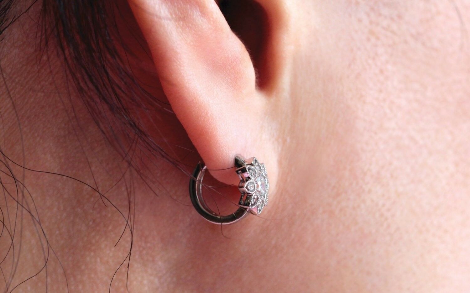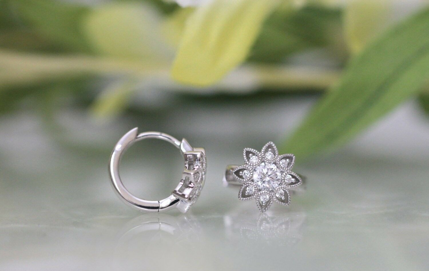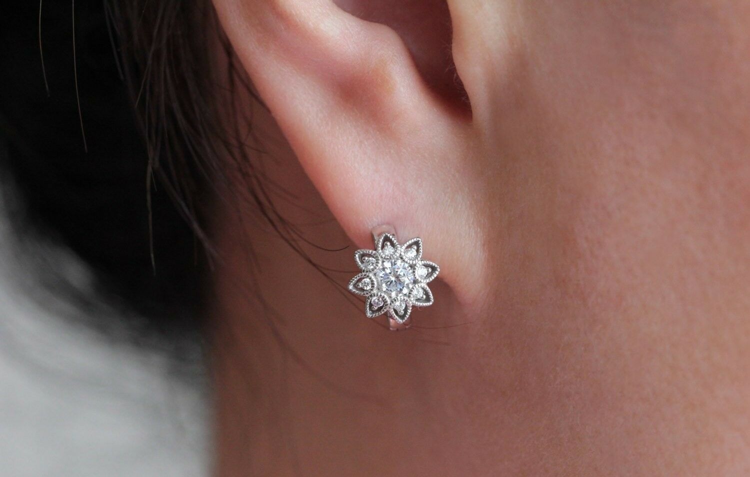 Art Deco Flower Hoop Earrings 1ct Round Cut VVS1D Diamond 14k White Gold Finish