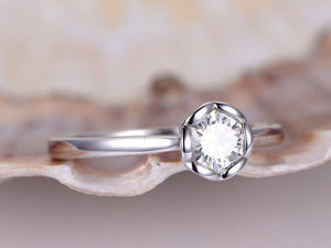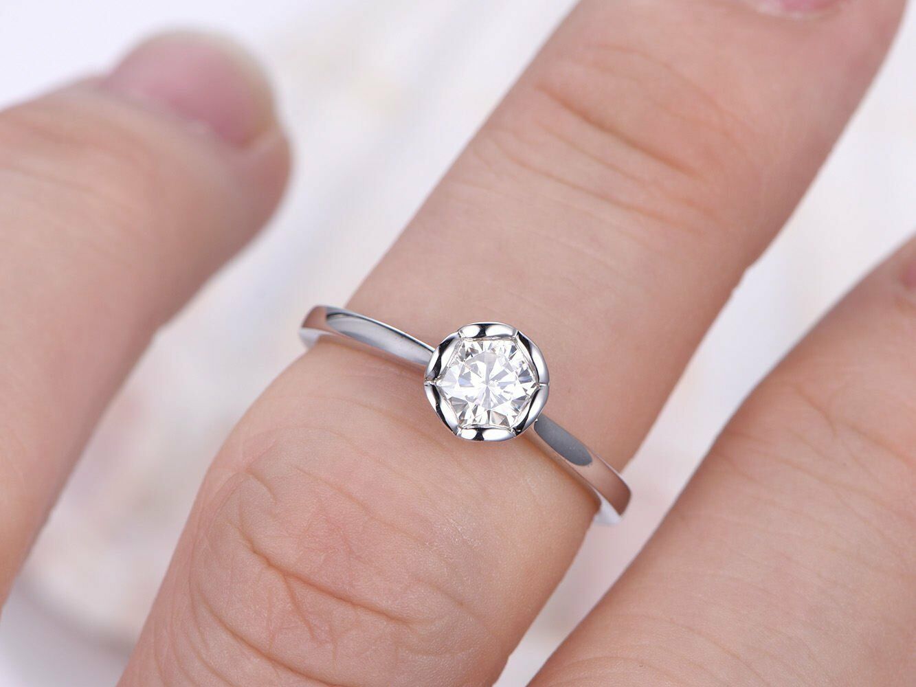 Bezel Set Engagement Ring 0.5ct Round Brilliant Cut Diamond 14k WhiteGold Finish