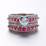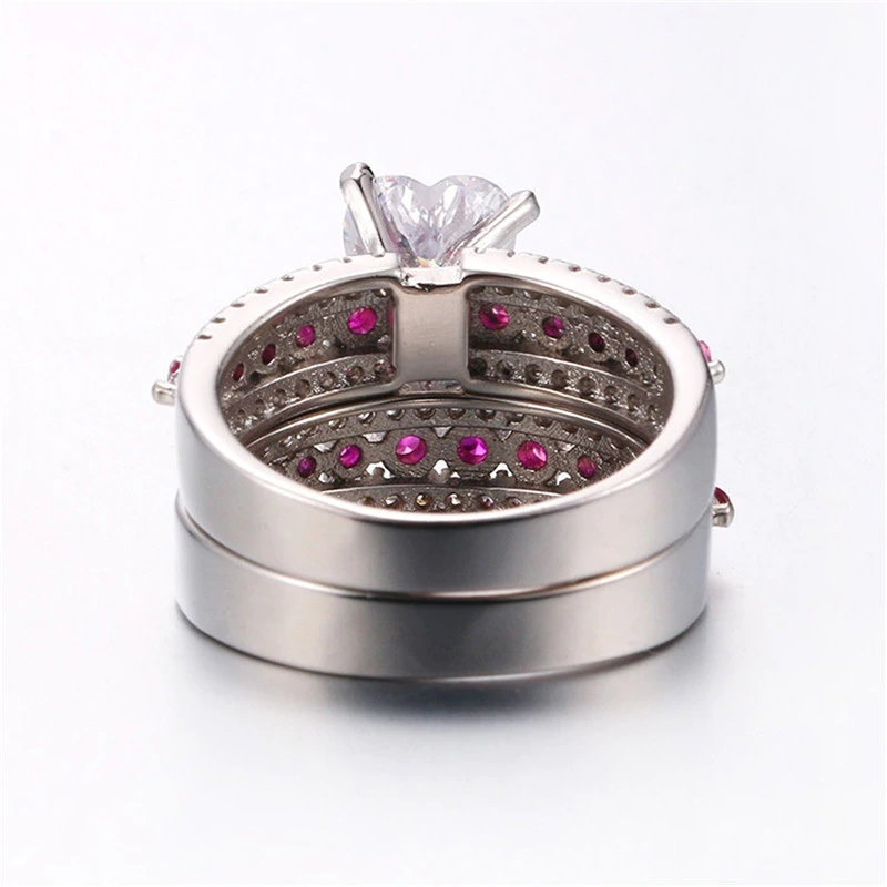 Bridal Set Engagement Ring 2.6ct Heart Cut VVS1D Diamond 14k White Gold Finish