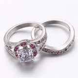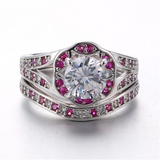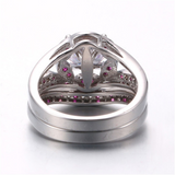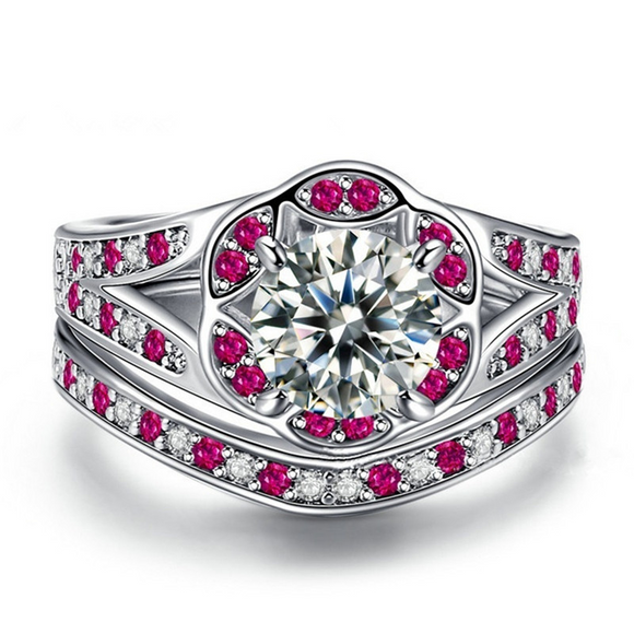 Floral Bridal Set Engagement Ring 2.6ct Round Cut Diamond 14k White Gold Finish