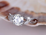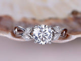 Floral Promise Engagement Ring 1ct Round Cut VVS1D Diamond 14k White Gold Finish