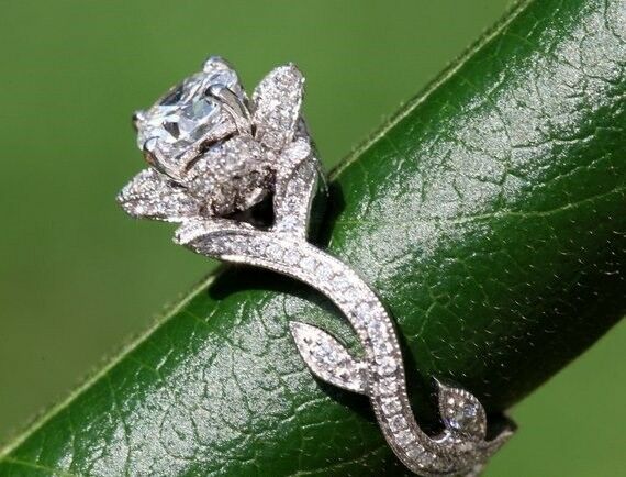 Flower Inspired Engagement Ring 1.4ct Round Cut Diamond 14k White Gold Finish