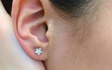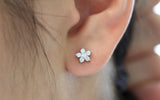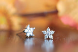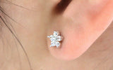 Flower Stud Earrings 0.3ct Round Brilliant Cut Diamond 14k White Gold Finish