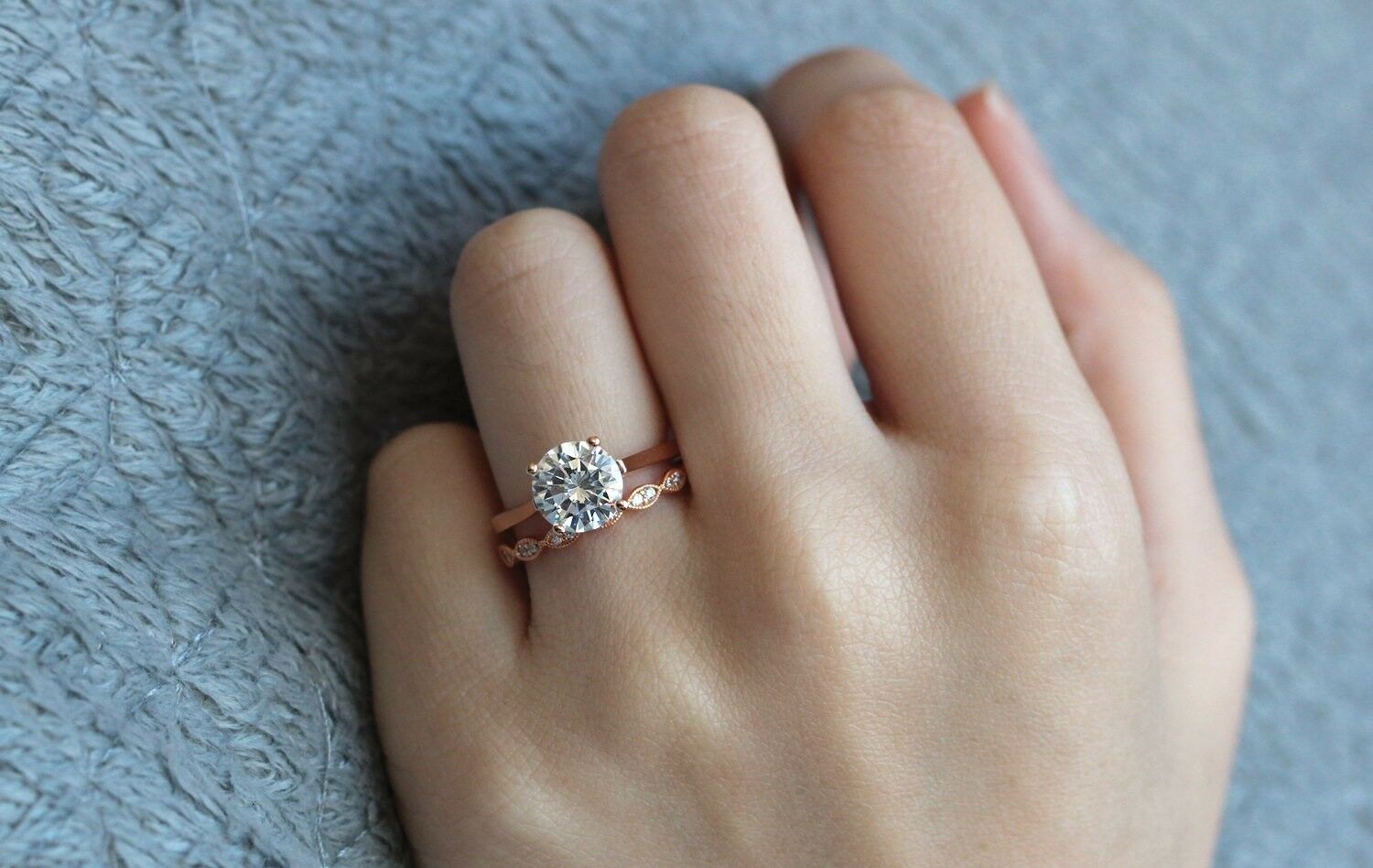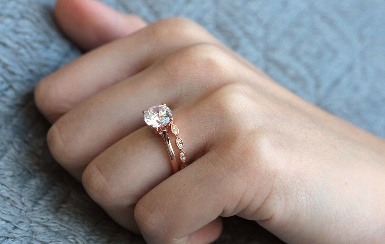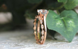 Halo Art Deco Bridal Set Engagement Ring 2ct Round Cut Diamond 14k RoseGold Over