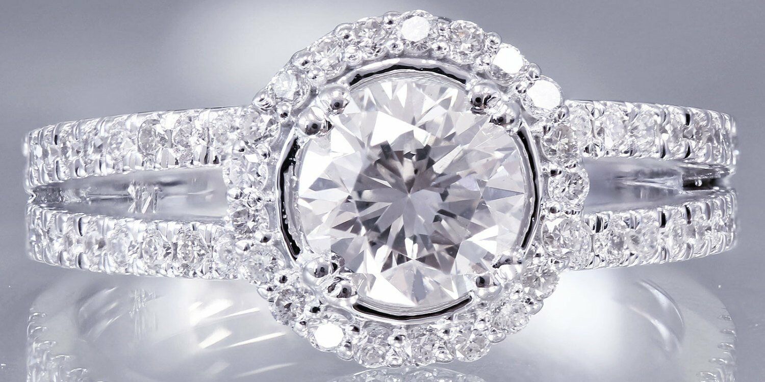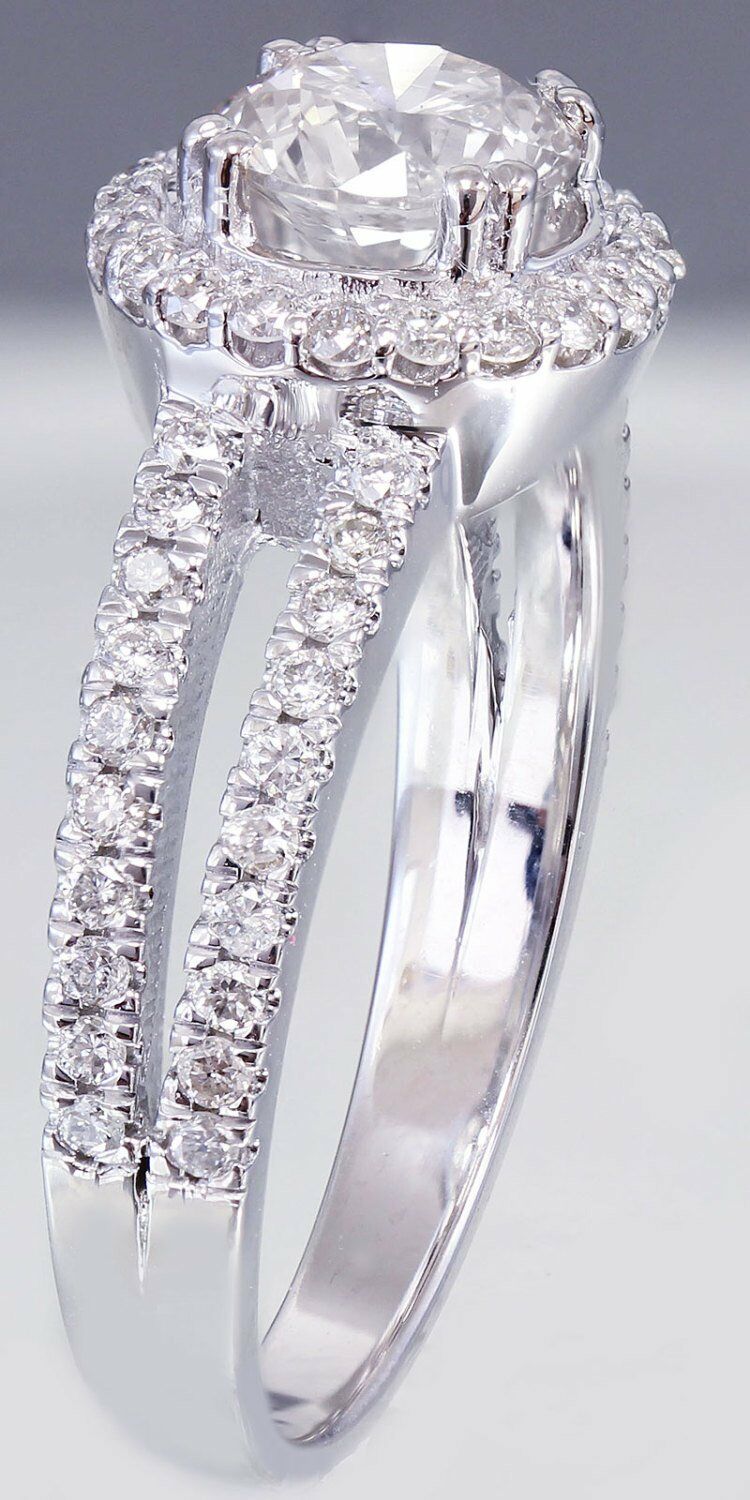 Halo Split Shank Engagement Ring 2.3ct Round Cut Diamond 14k White Gold Finish
