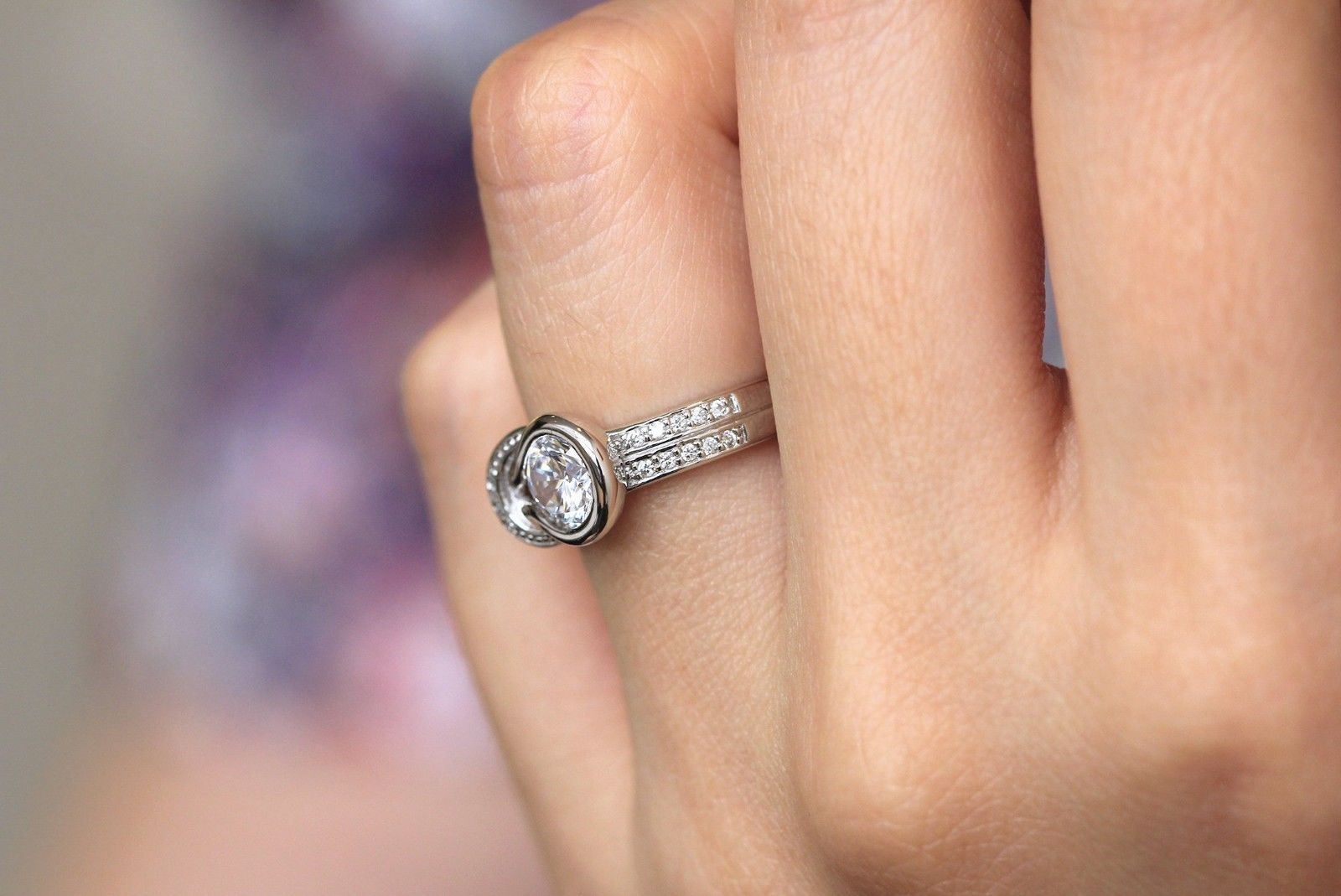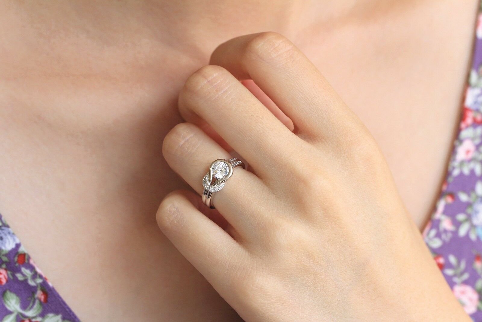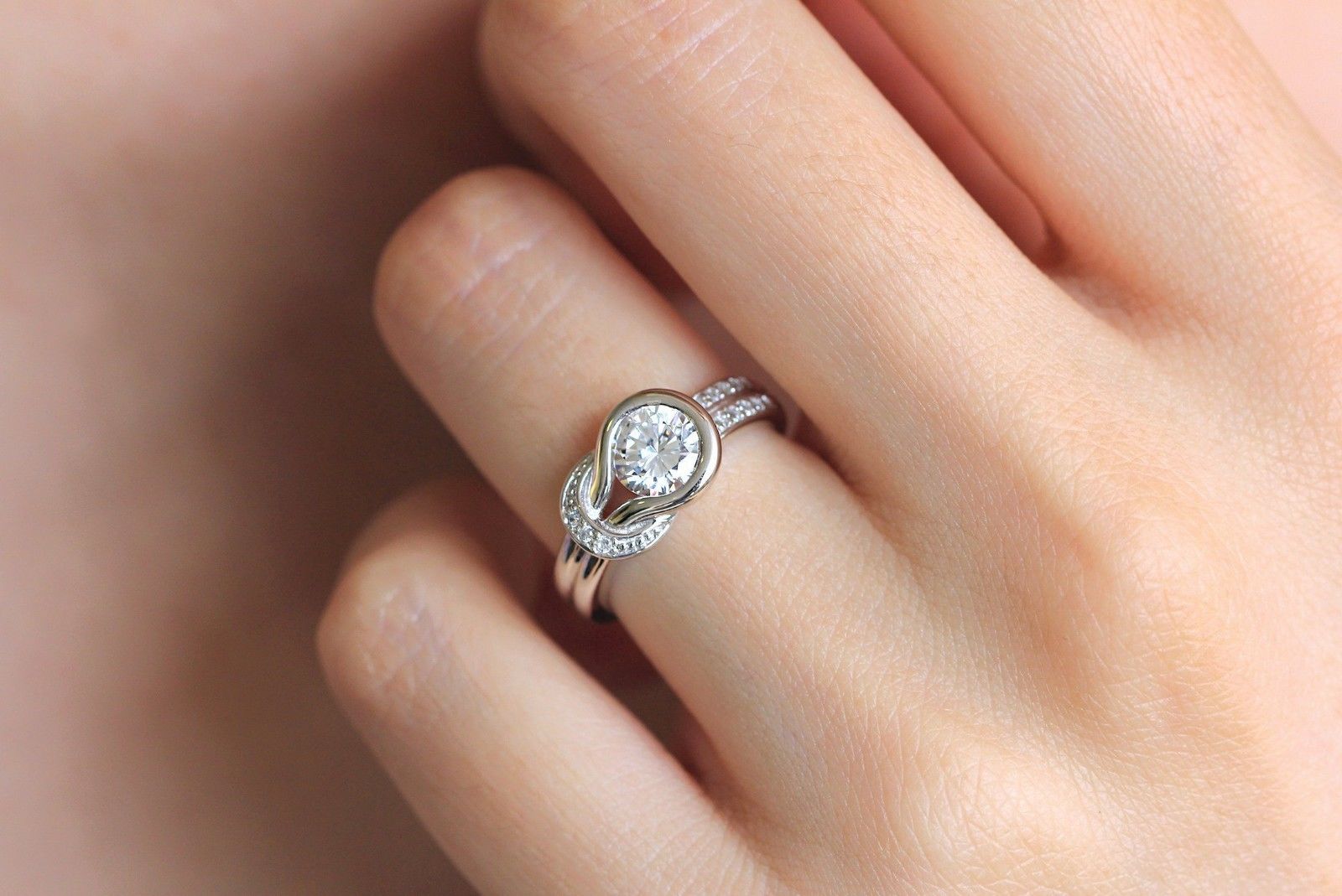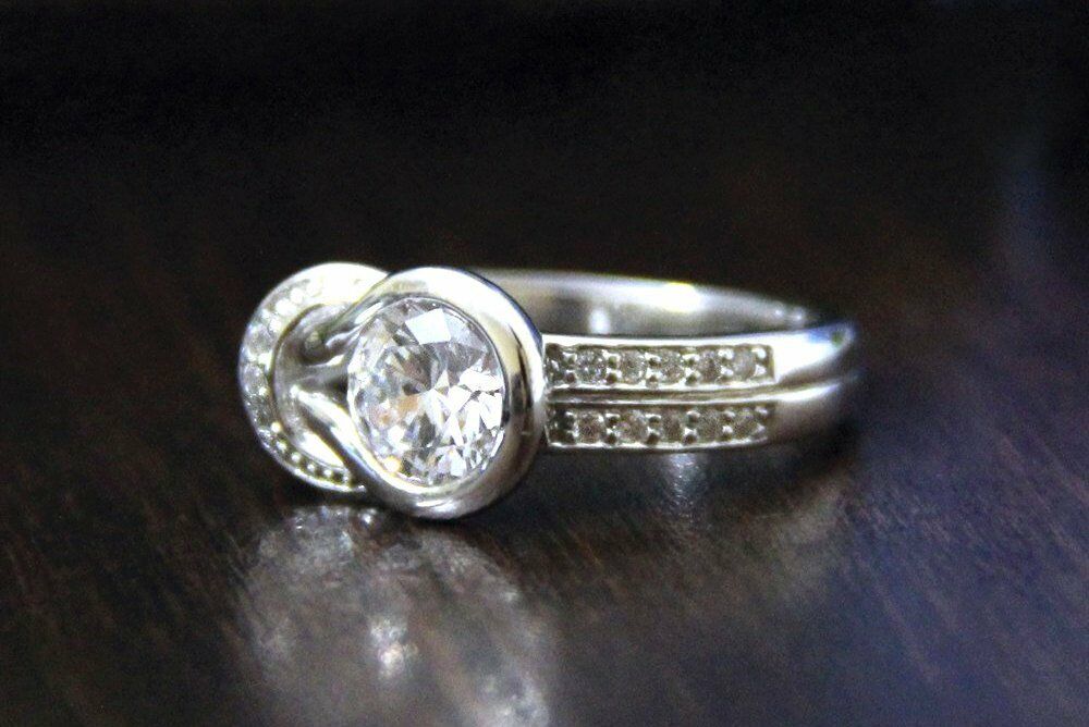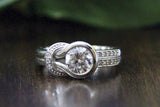 Knot Engagement Ring 0.8ct Round Brilliant Cut Diamond 14k White Gold Finish