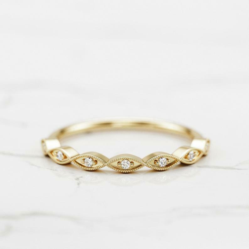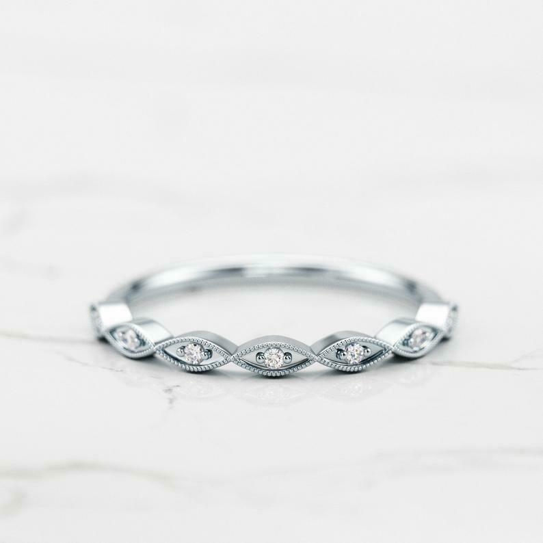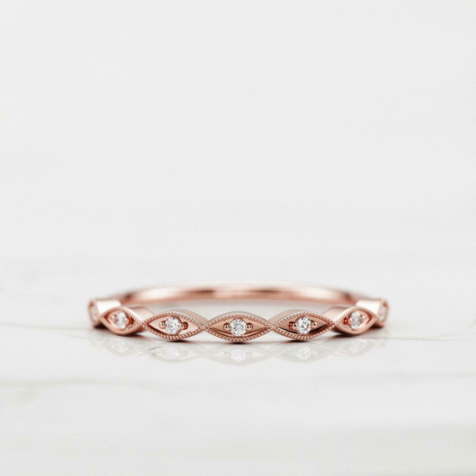 Milgrain Half Eternity Wedding Band 0.25ct Round Cut Diamond 14k RoseGold Finish