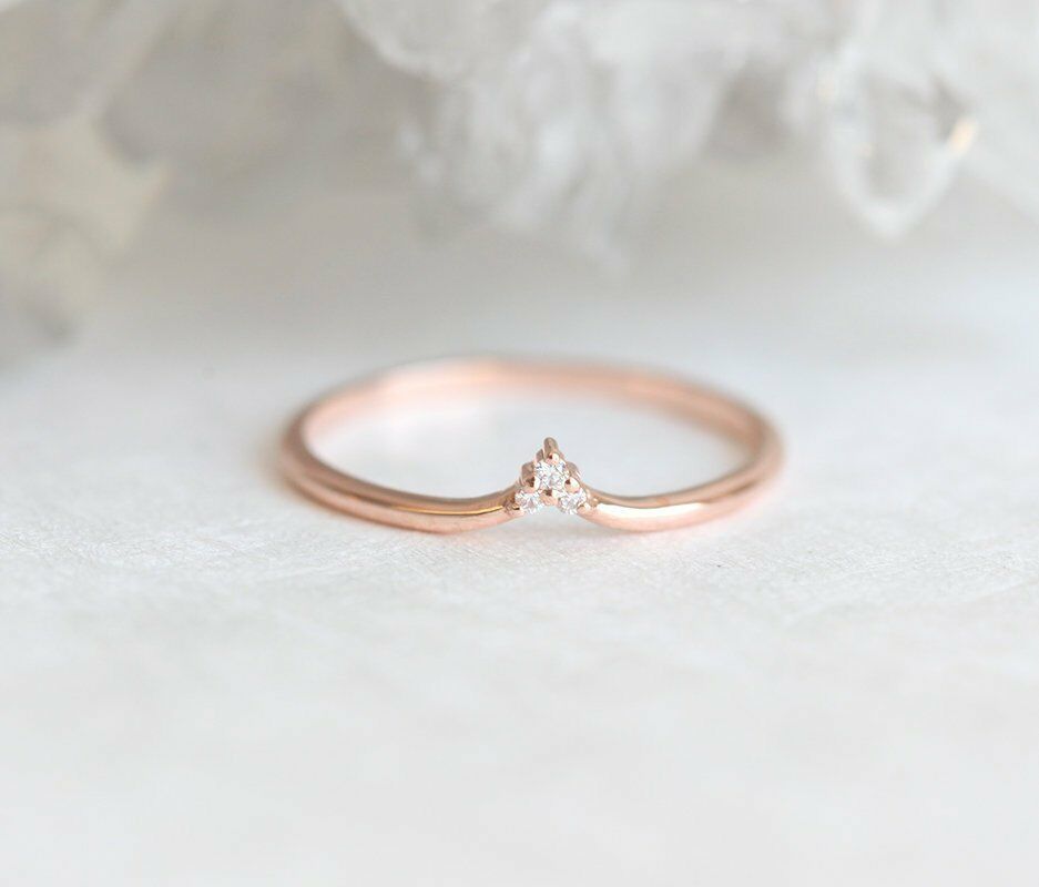 Minimalist Wedding Ring Band 1ct Round Cut VVS1D Diamond 14k Rose Gold Finish