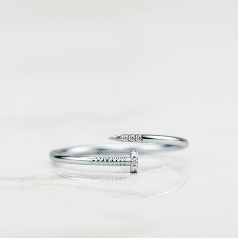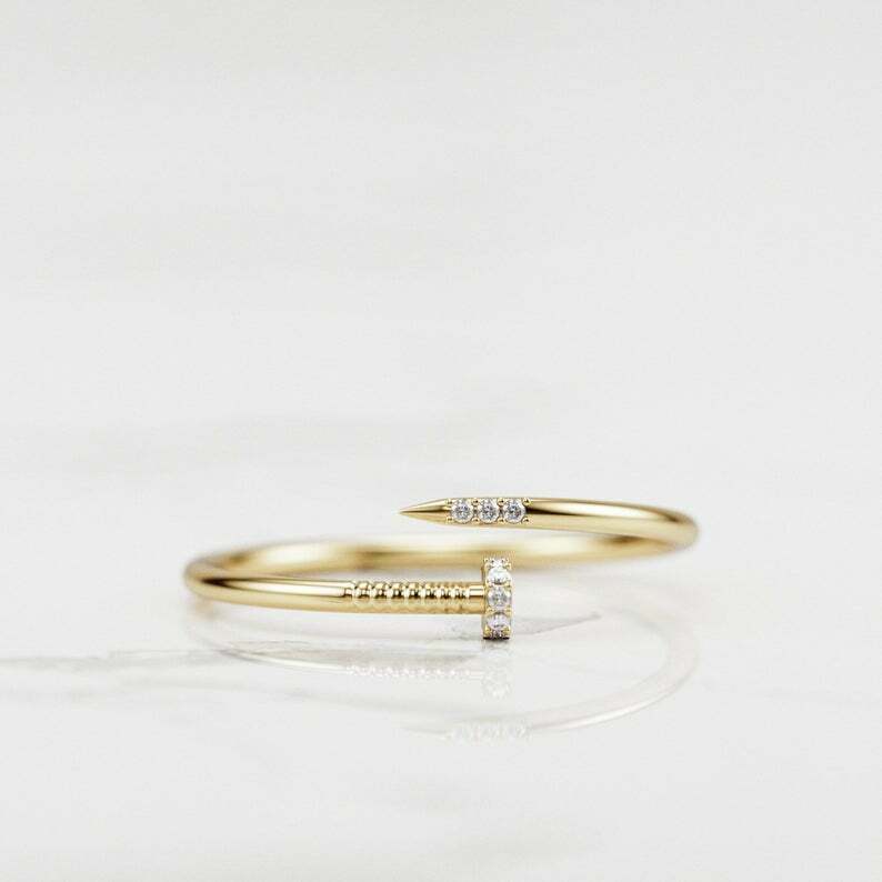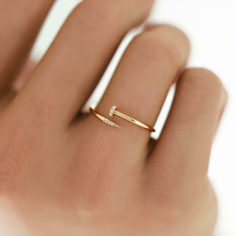 Open Bypass Nail Engagement Ring 0.3ct Round Cut Diamond 14k Yellow Gold Finish