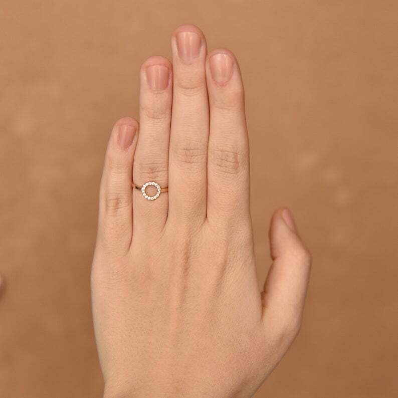 Open Circle Minimalist Engagement Ring 1ct Round Cut Diamond 14k RoseGold Finish