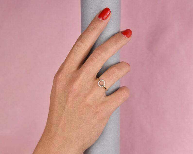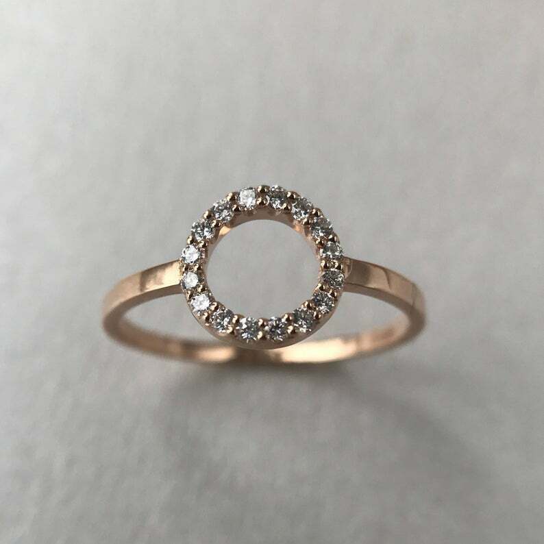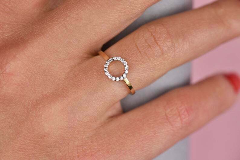 Open Circle Minimalist Engagement Ring 1ct Round Cut Diamond 14k Rose Gold Finish