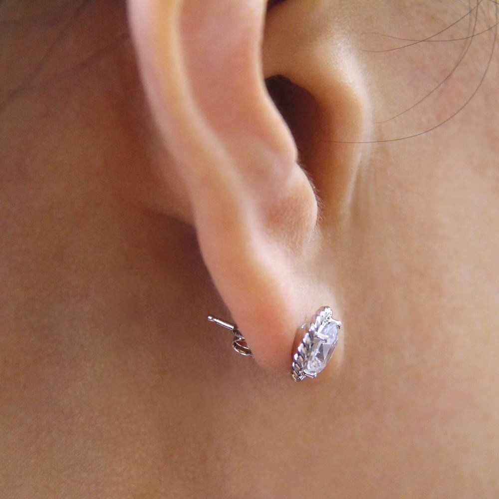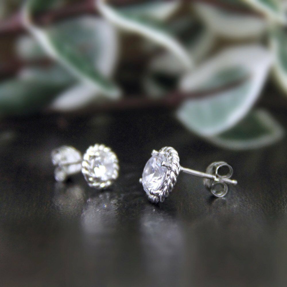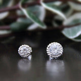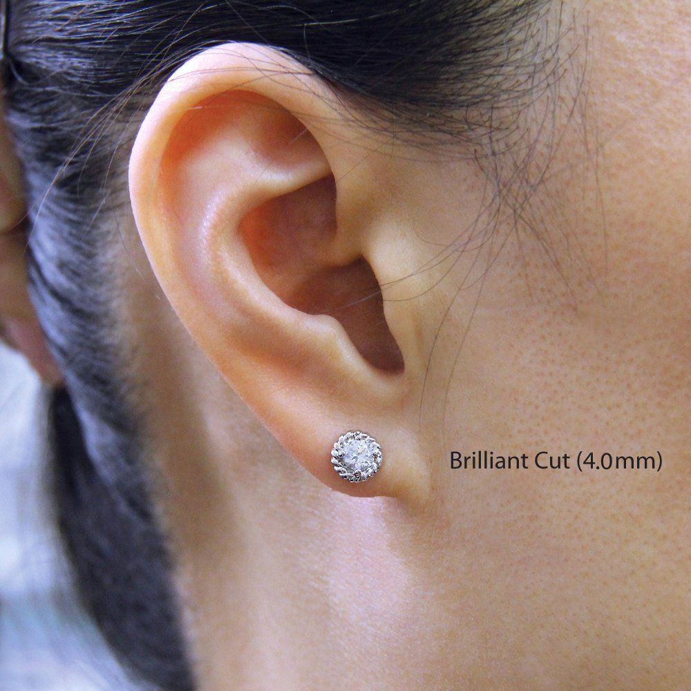 Rope Shape Solitaire Stud Earrings 0.5ct Round Cut Diamond 14k White Gold Finish