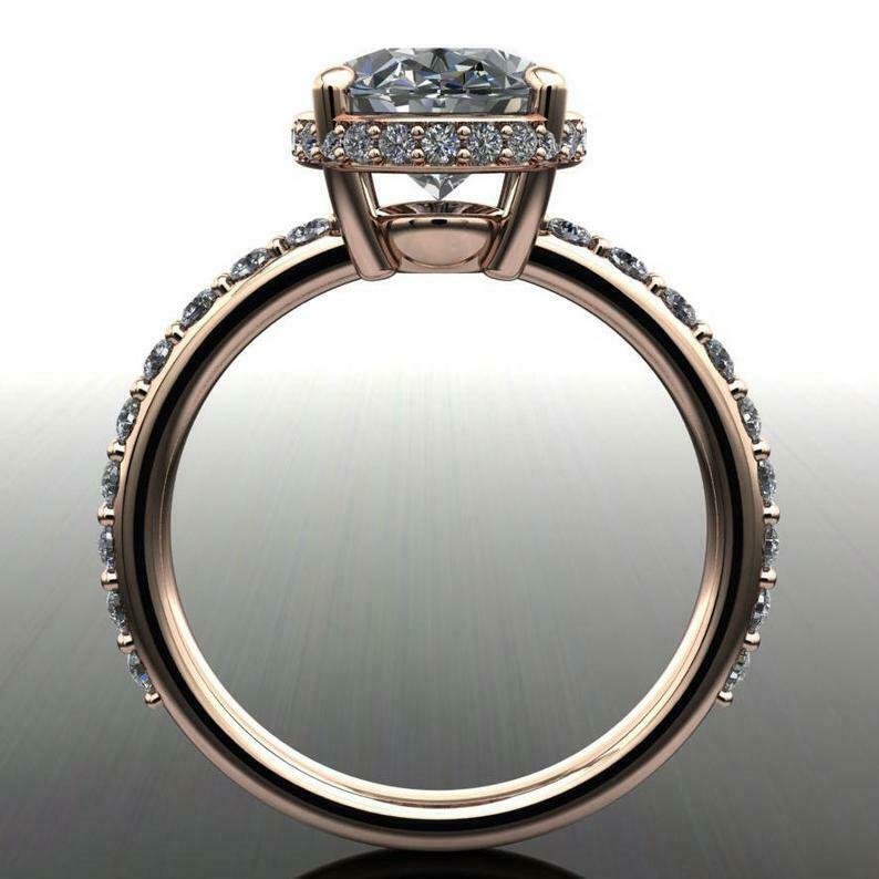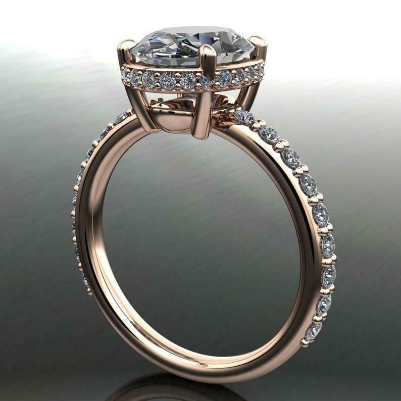 Round Accent Hidden Halo Engagement Ring 2ct Oval Cut Diamond 14k Rose Gold Over