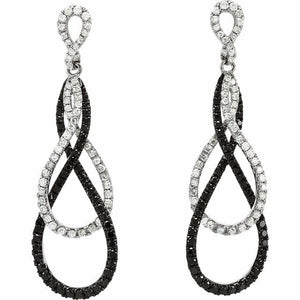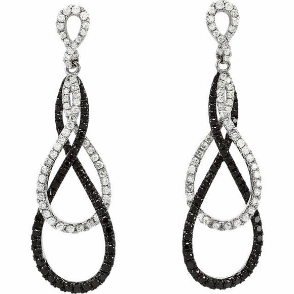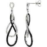 Round Cut Black Diamond Infinity Intertwined Drop Earrings 14k White Gold Finish