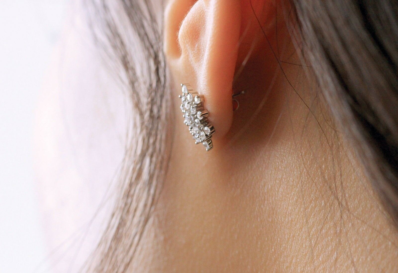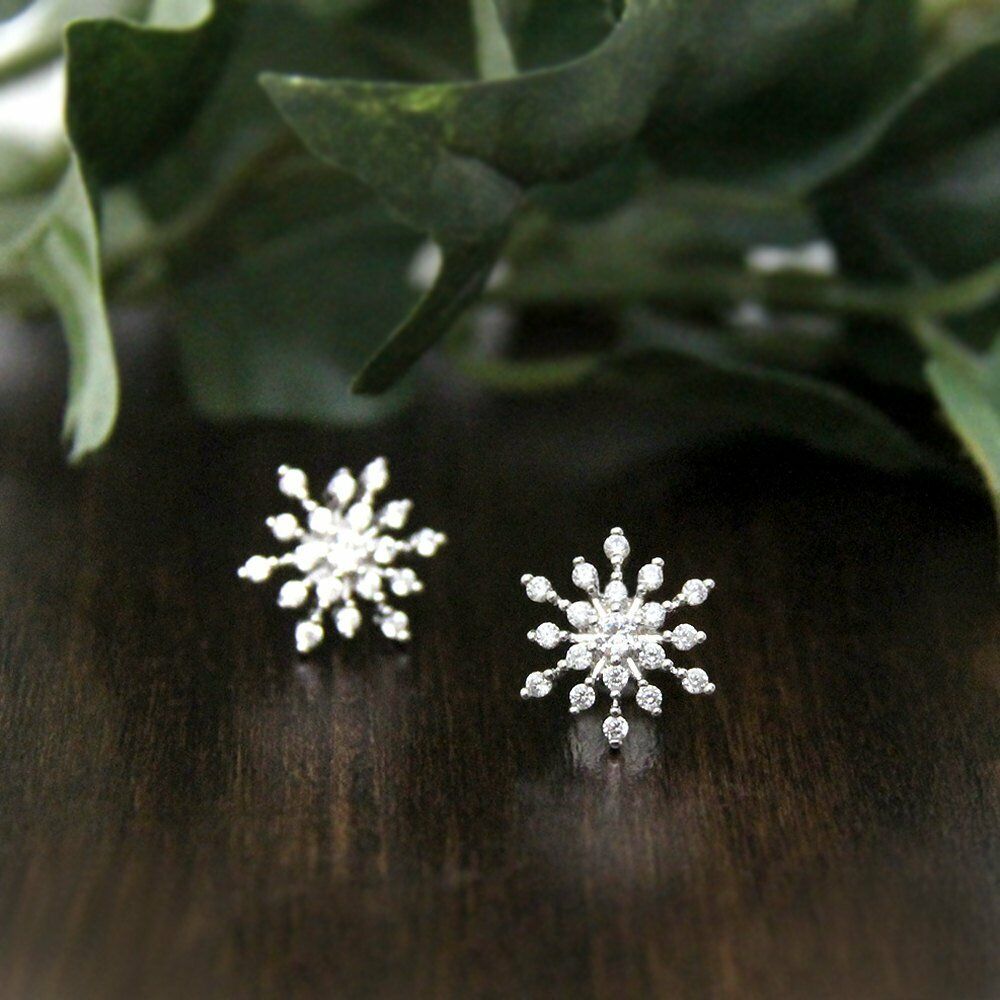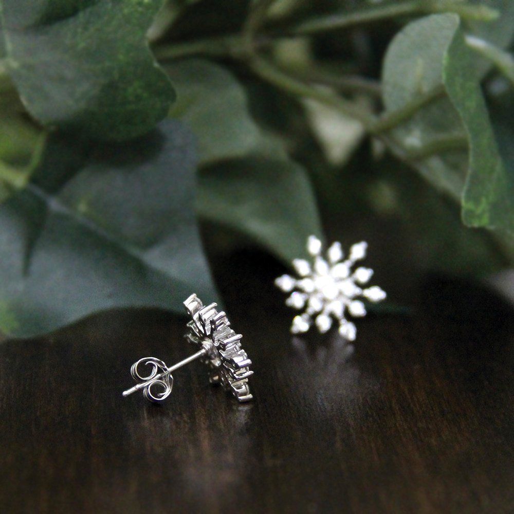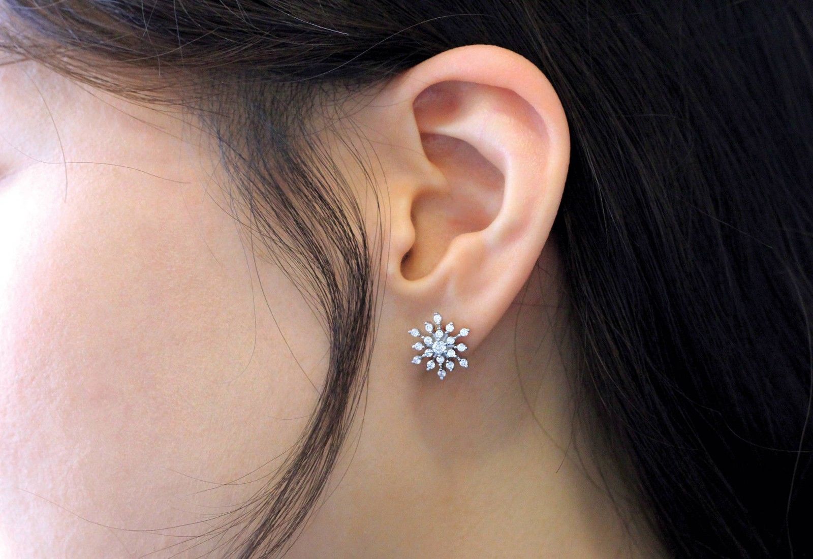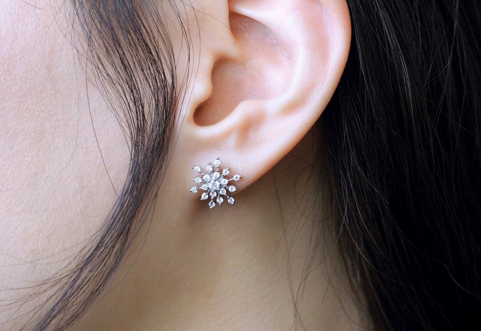 Snowflake & Bloom Stud Earrings 0.7ct Round Cut Diamond 14k White Gold Finish