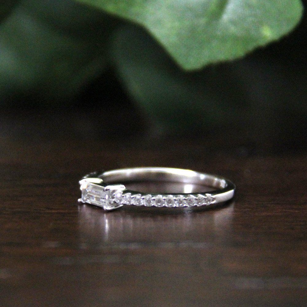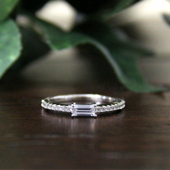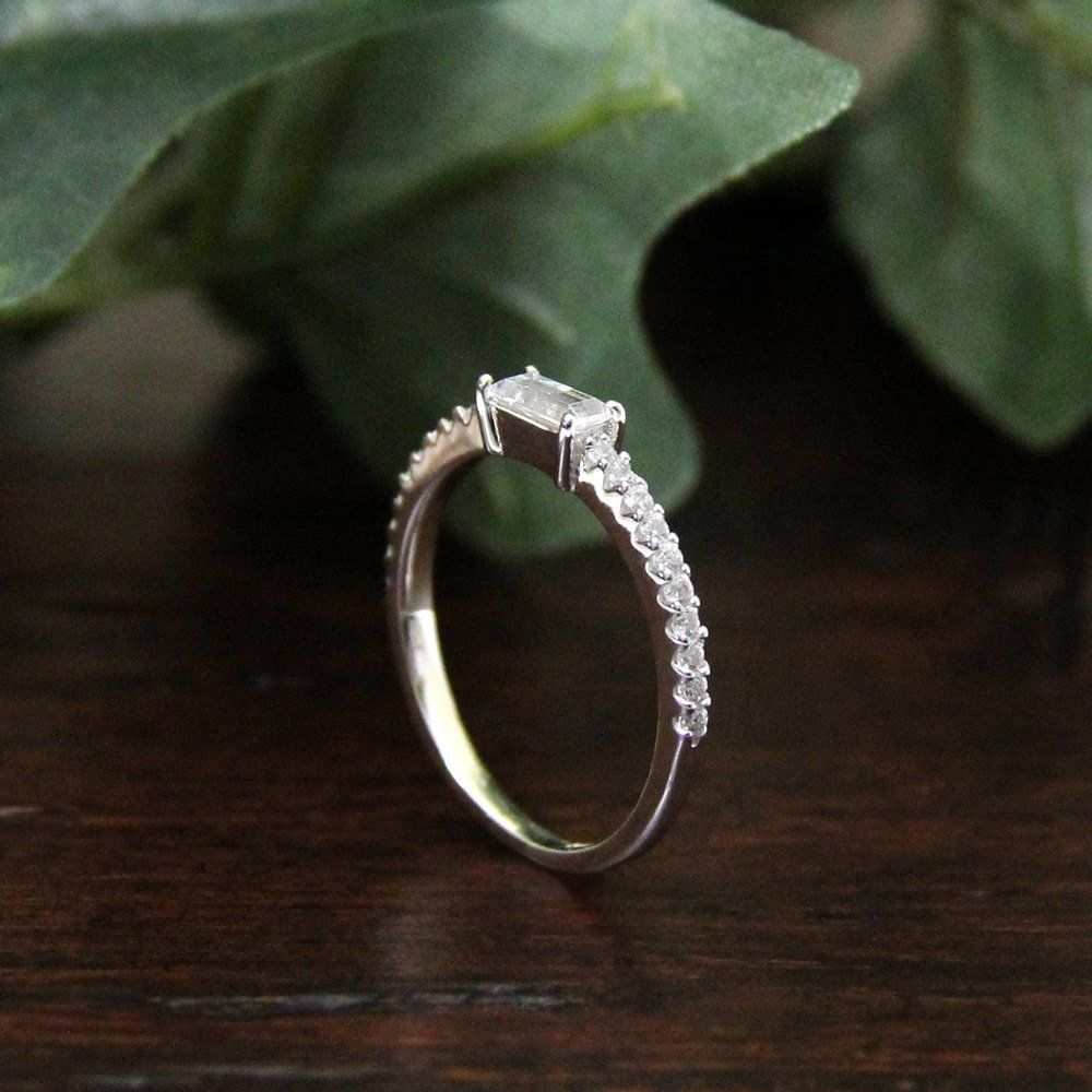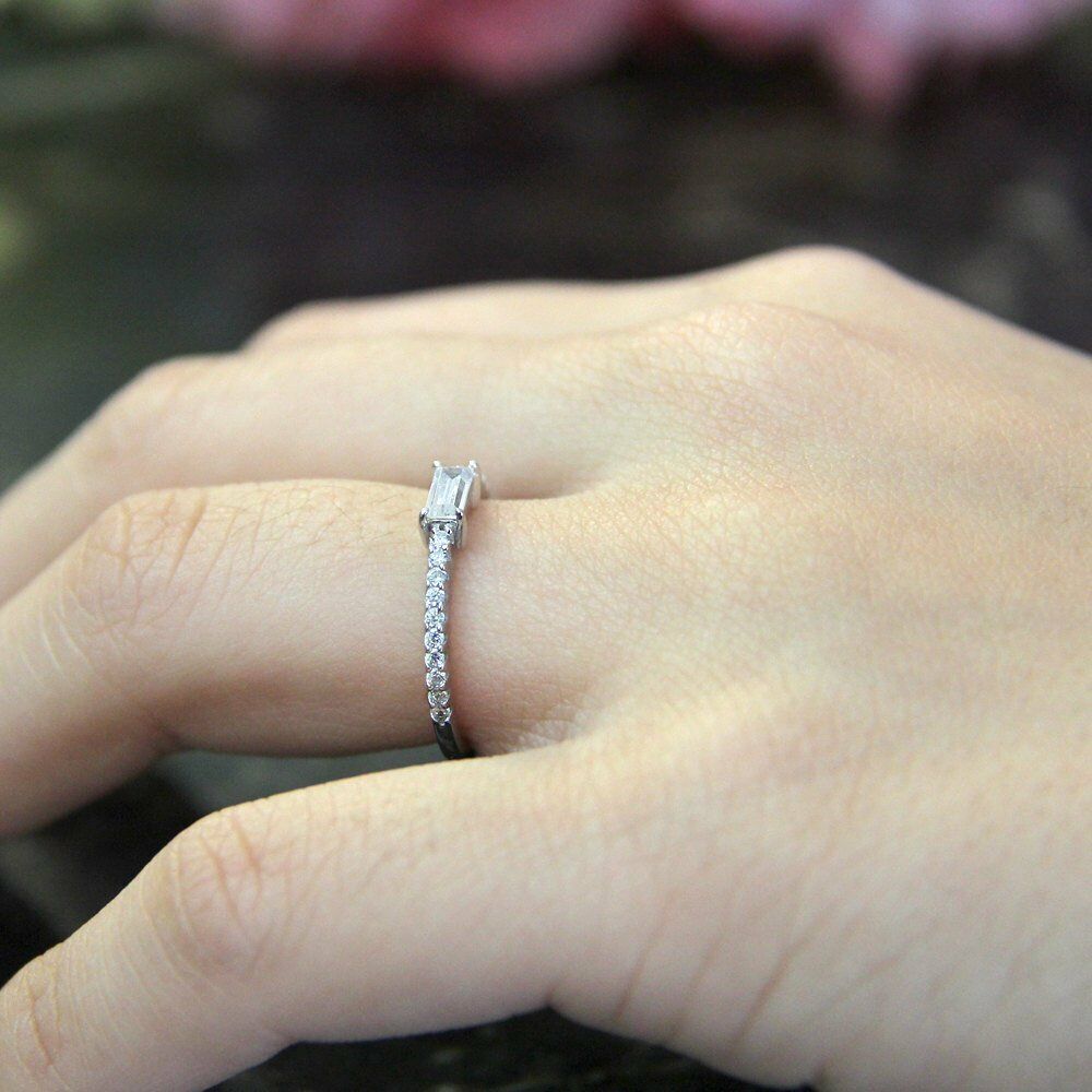 Solitaire Engagement Band Ring 0.5ct Baguette Cut Diamond 14k White Gold Finish