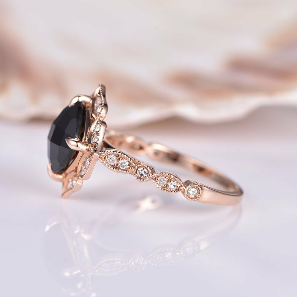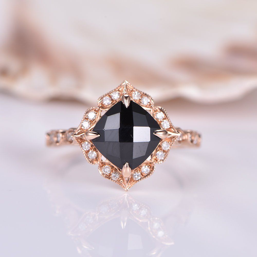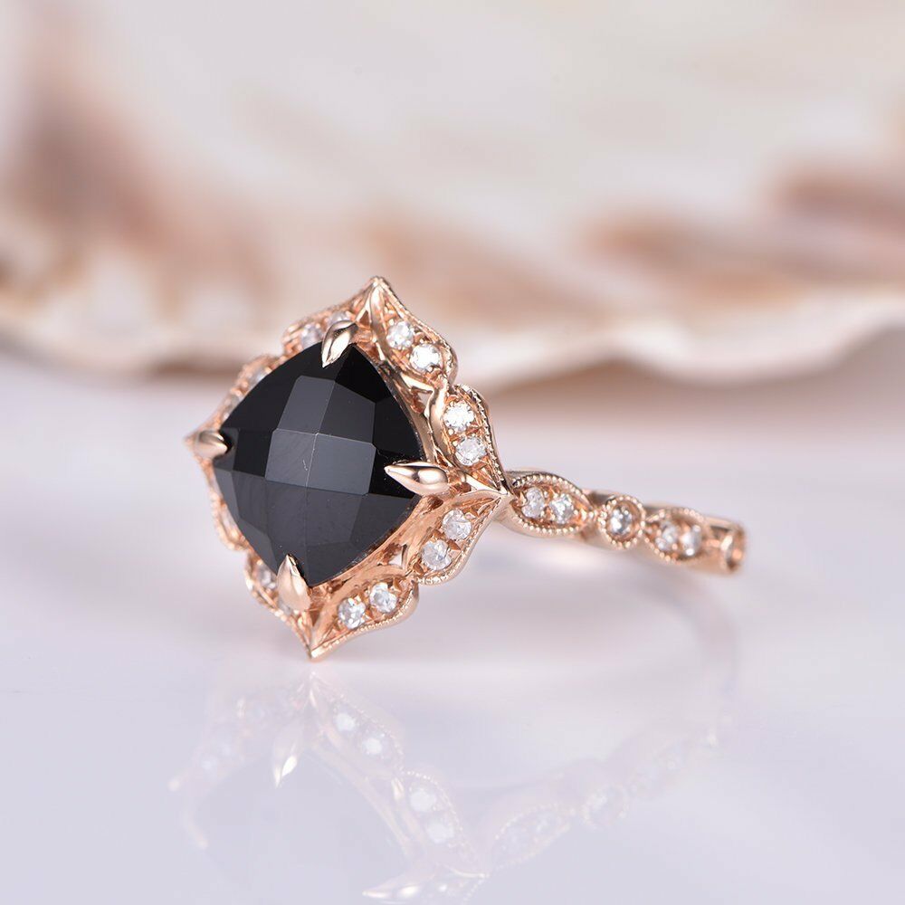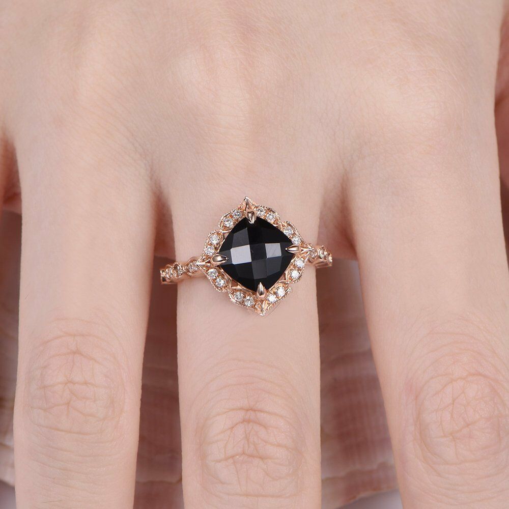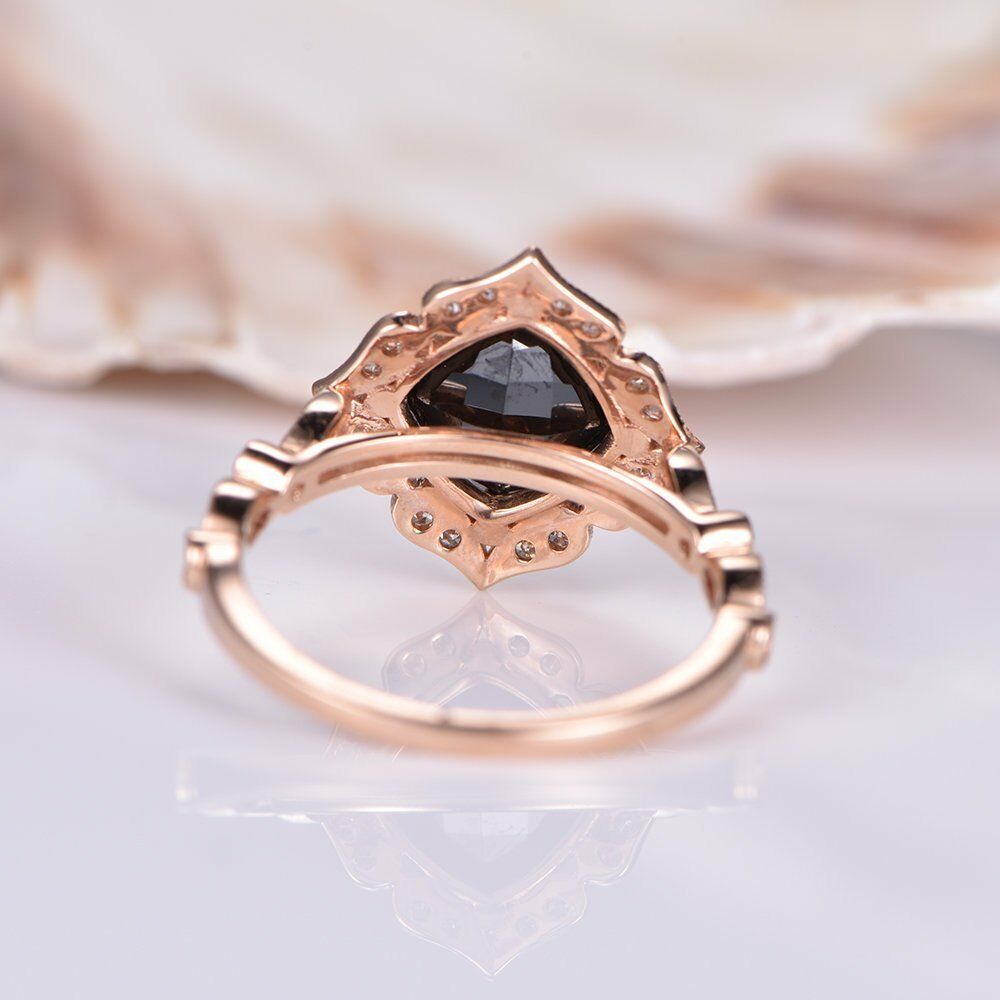 Solitaire Engagement Ring 1.2ct Cushion Cut Black Diamond 14k Rose Gold Finish