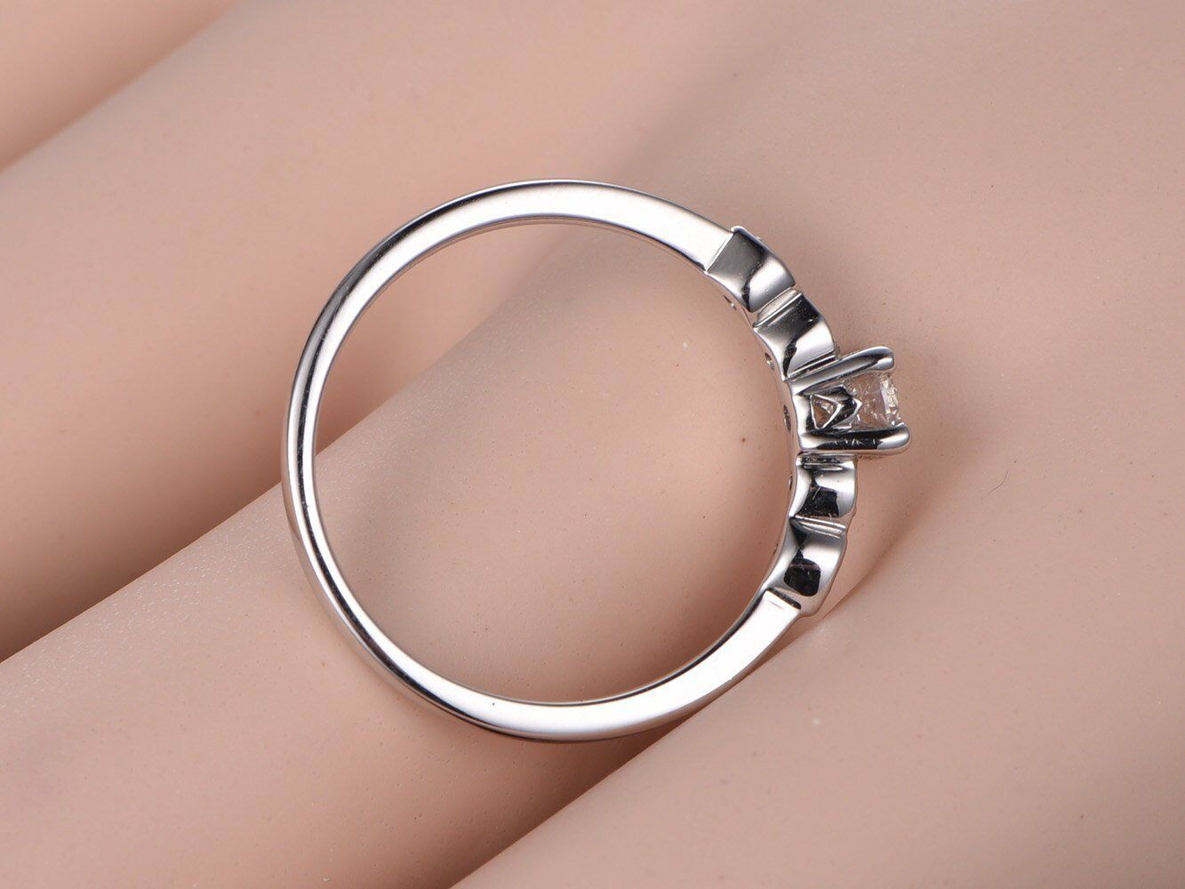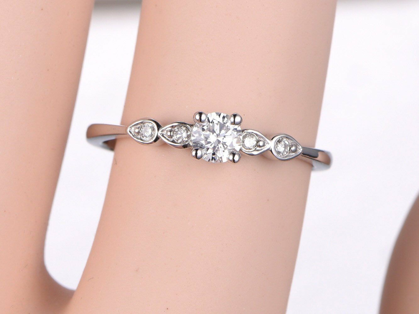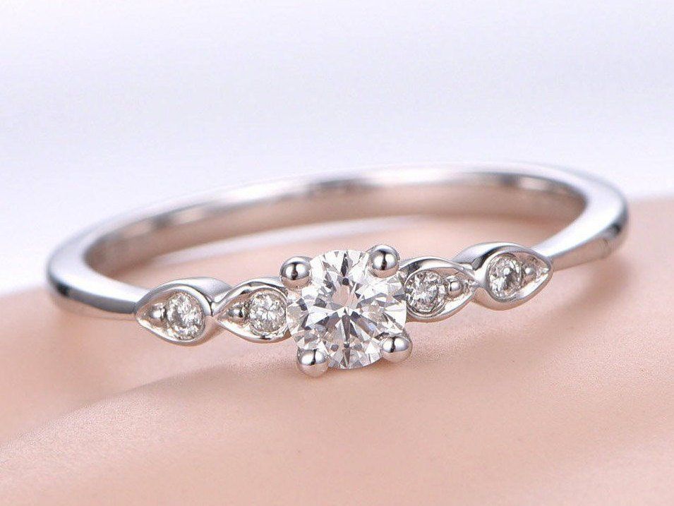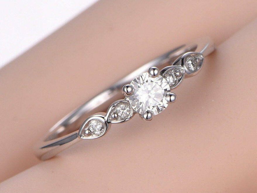 Solitaire Promise Engagement Ring 1ct Round Cut Diamond 18k White Gold Finish