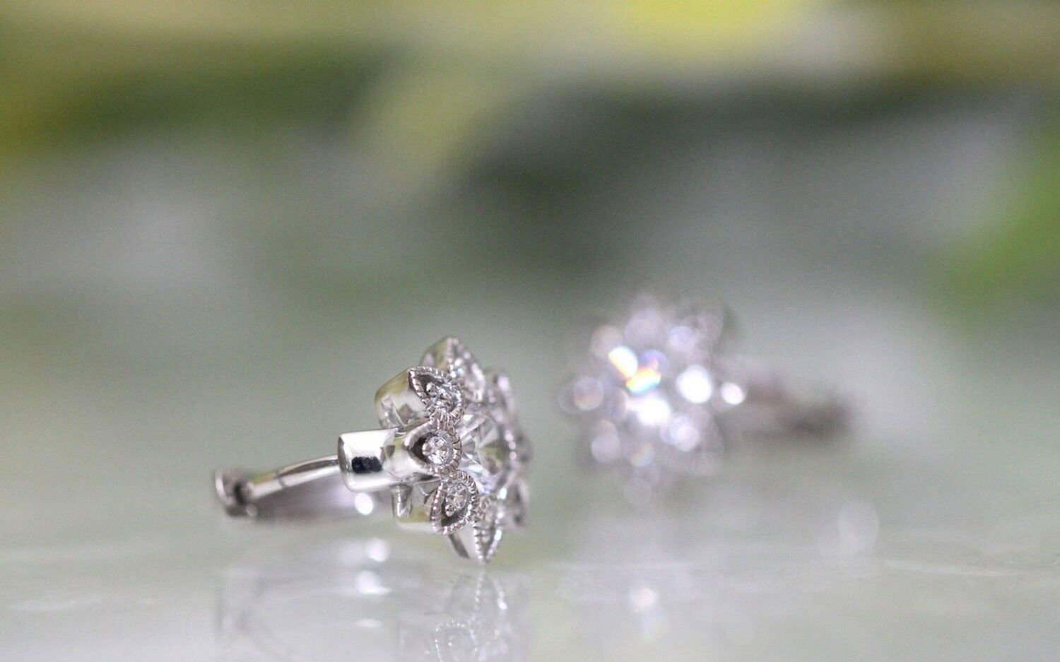 Sparkle Flower Hoop Earrings 0.62ct Round Cut VVS1 Diamond 14k White Gold Finish