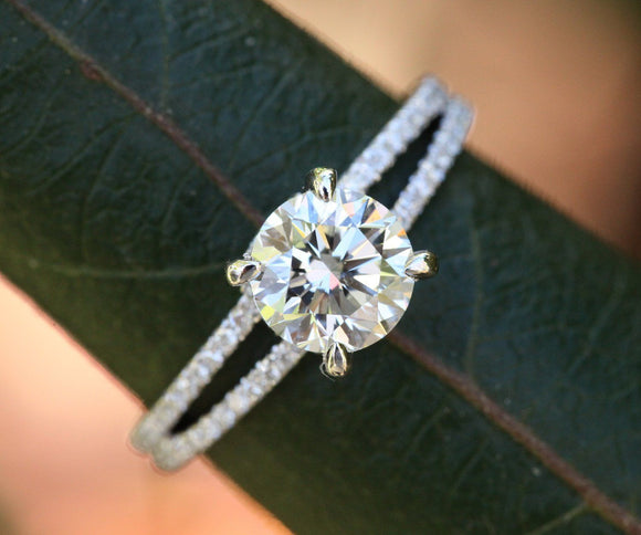 Split Shank Engagement Ring 1.2ct Round Cut VVS1D Diamond 14k White Gold Finish