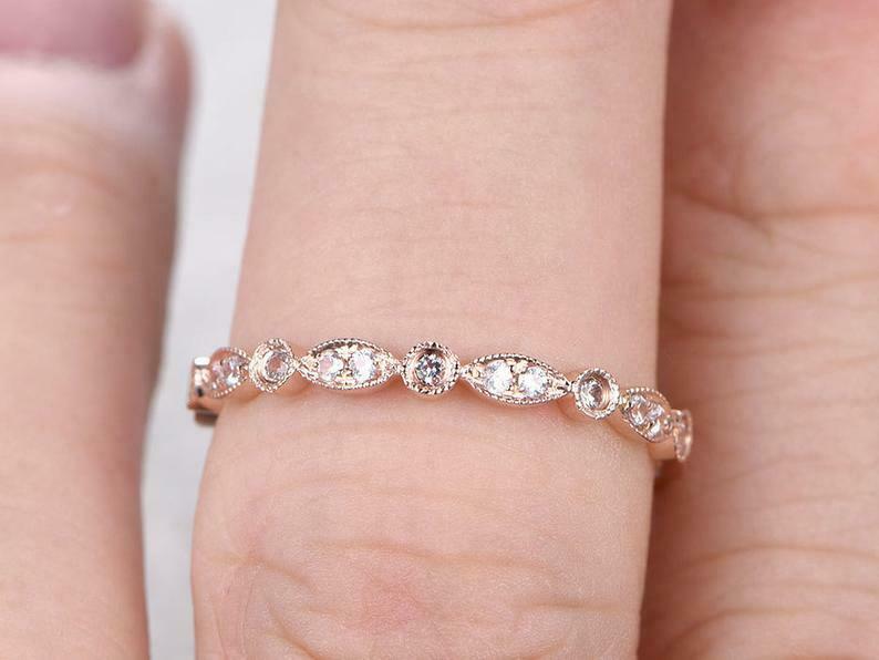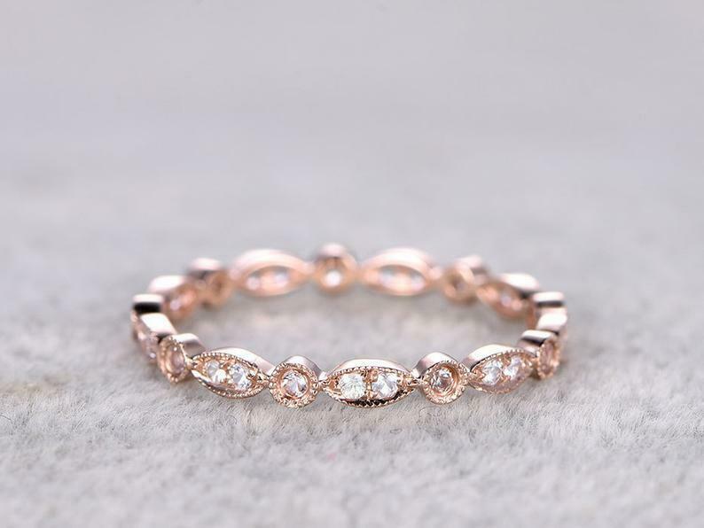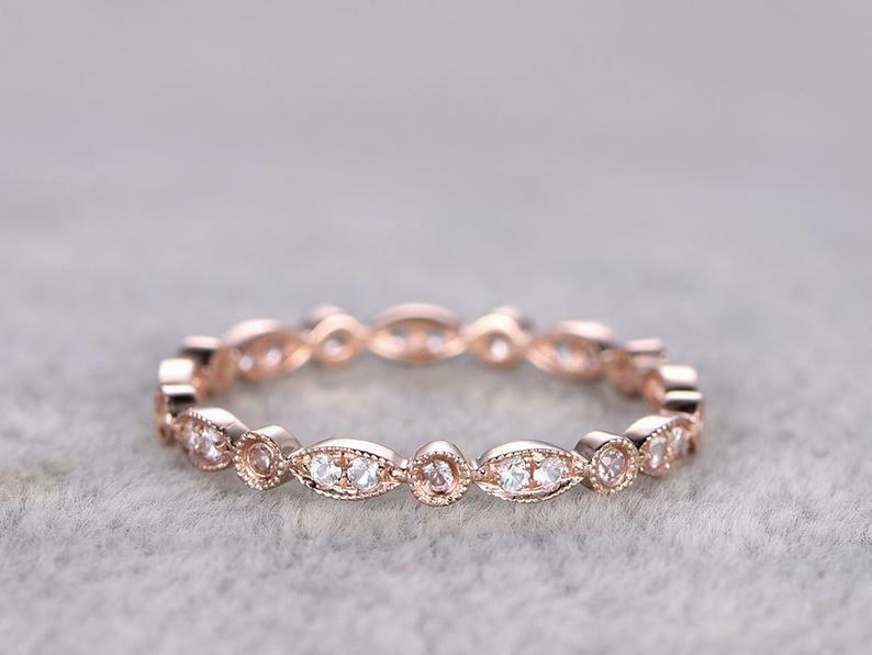 Stackable Full Eternity Wedding Band 1ct Round Cut Diamond 14k Rose Gold Finish