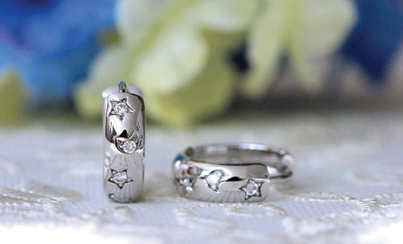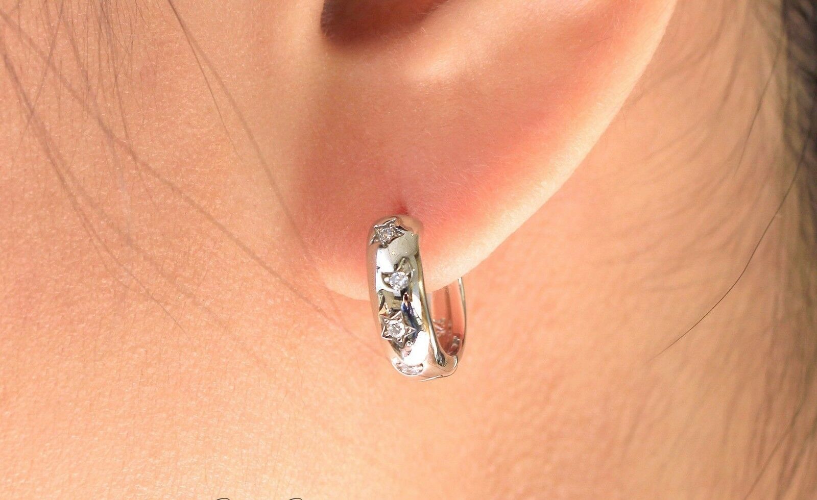 Star Design Hoop Earrings 1ct Round Cut VVS1D Diamond 14k White Gold Finish