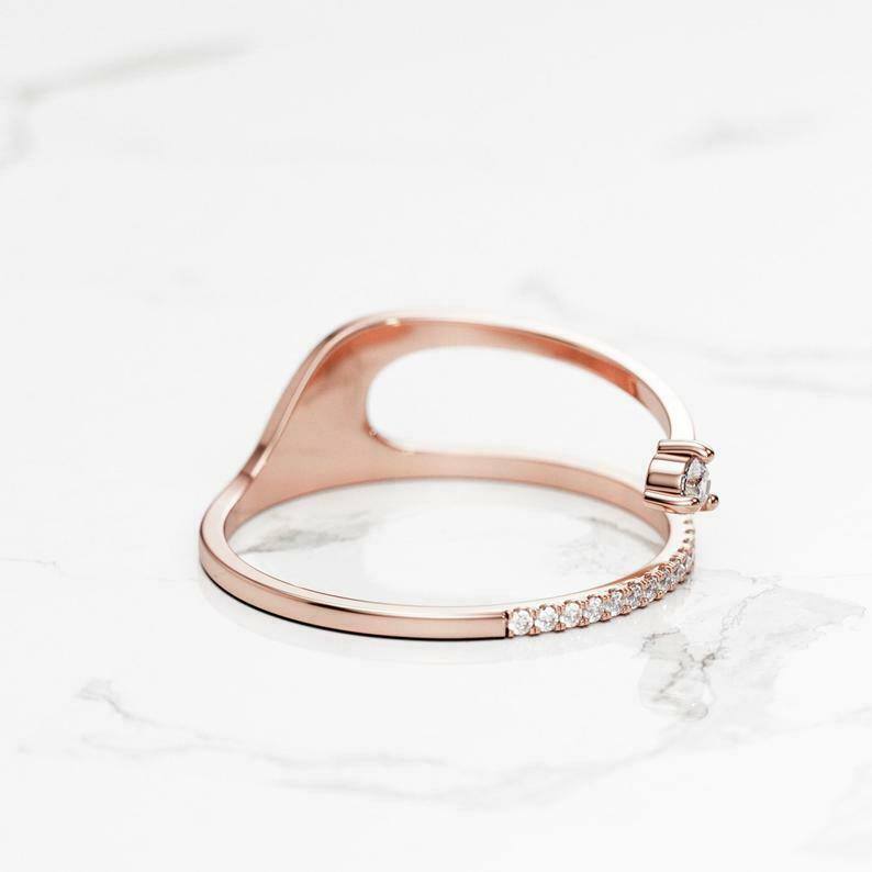 Stylish Arrow Open Engagement Ring 0.45ct Round Cut Diamond 14k Rose Gold Finish