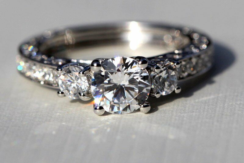 Three Stone Engagement Ring 1.5ct Round Cut VVS1D Diamond 14k White Gold Finish