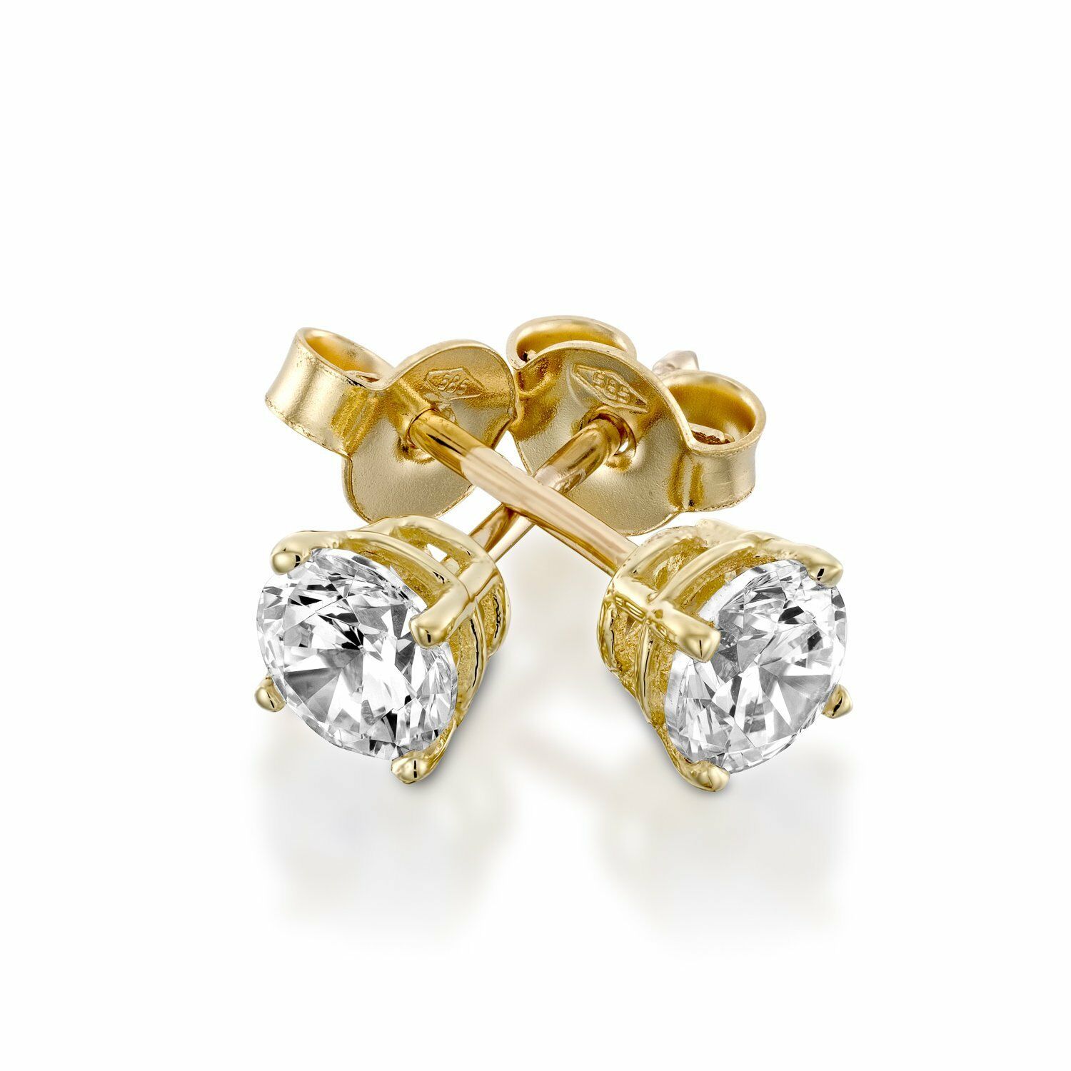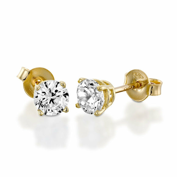 Tiny Women Stud Earrings 0.6ct Round Cut VVS1D Diamond 14k Yellow Gold Finish