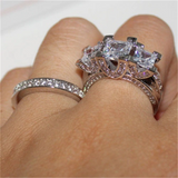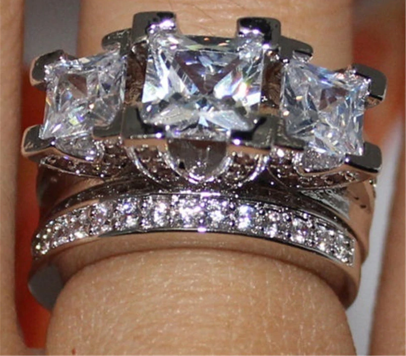 Trilogy Bridal Set Engagement Ring 2ct Princess Cut Diamond 14k WhiteGold Finish