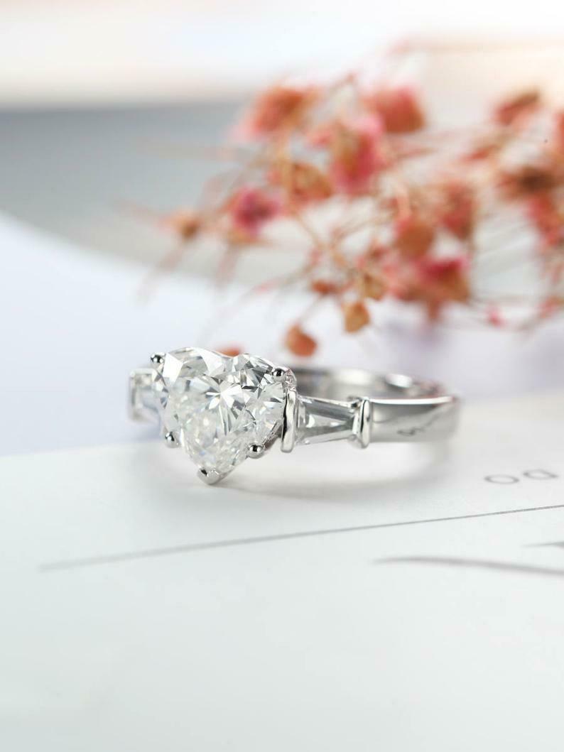Trilogy Women Engagement Ring 1.5ct Heart Cut VVS1 Diamond 14k White Gold Finish