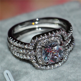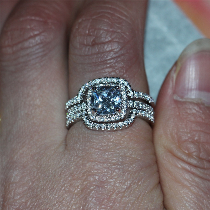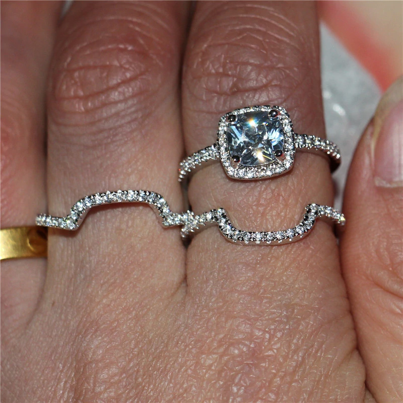 Trio Set Engagement Ring 2.9ct Cushion Cut VVS1D Diamond 14k White Gold Finish