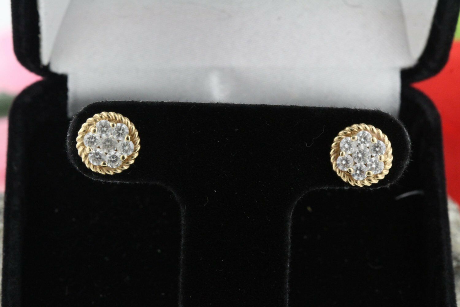 Twisted Rope Flower Stud Earrings 1.7ct Round Cut Diamond 14k Yellow Gold Finish