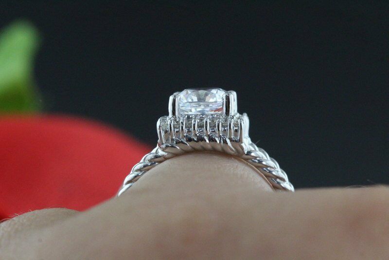 Twisted Split Shank Engagement Ring 1ct Cushion Cut Diamond 14k White Gold Over