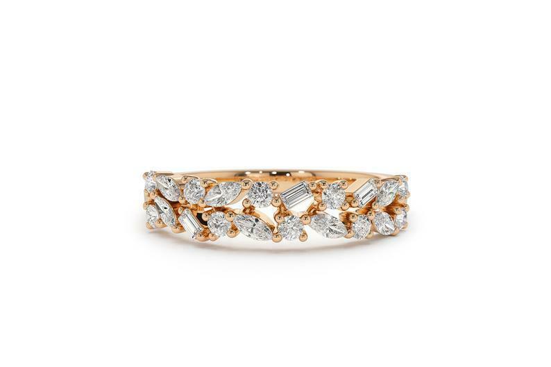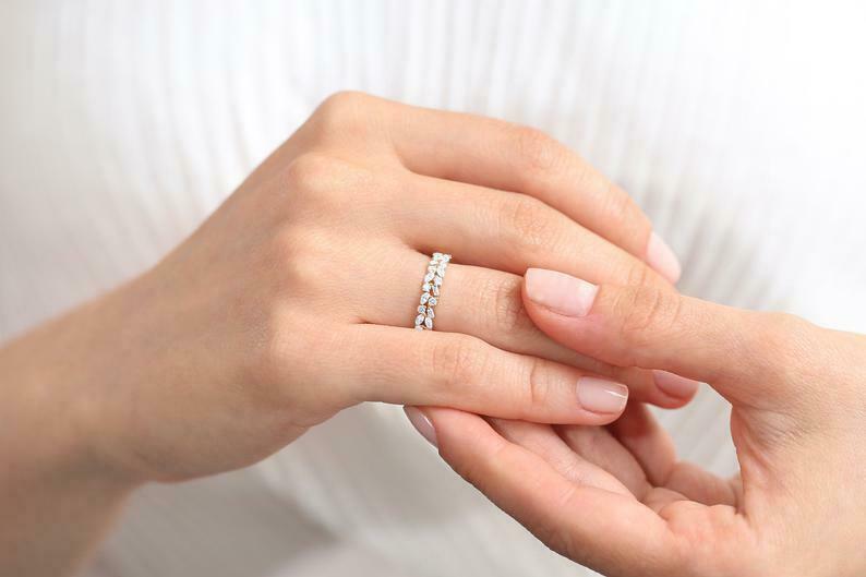 Two Rows Anniversary Wedding Band 1ct Marquise Cut Diamond 14k Yellow Gold Over