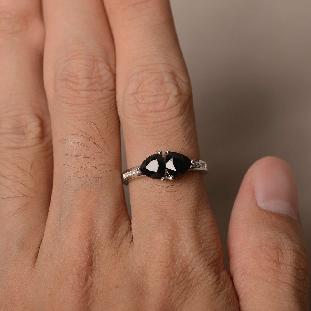Two Stone Engagement Ring 2ct Trillion Cut Black Diamond 14k White Gold Finish