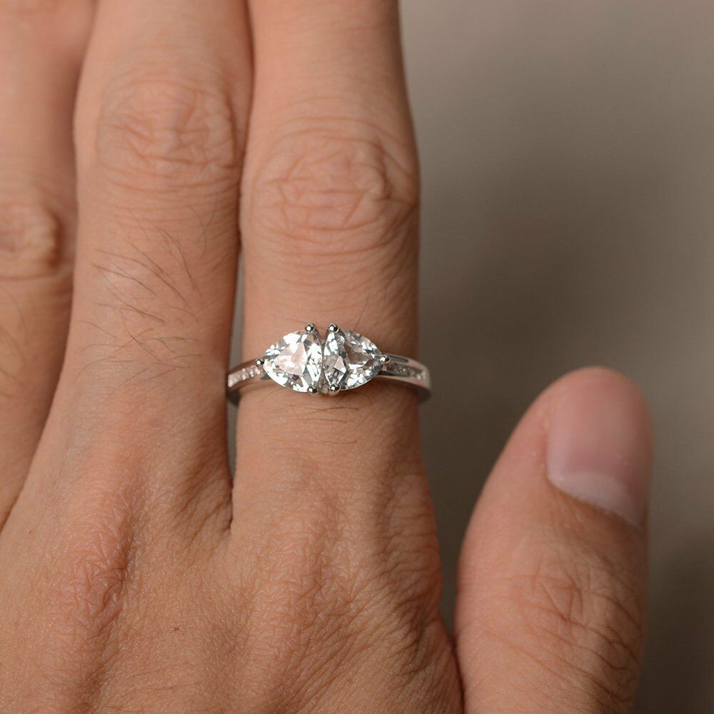 Two Stone Promise Engagement Ring 2ct Trillion Cut Diamond 14k White Gold Finish