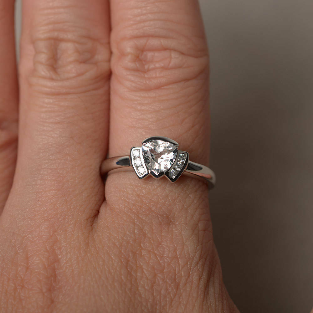 Unique Design Engagement Ring 1ct Trillion Cut Diamond 14k White Gold Finish
