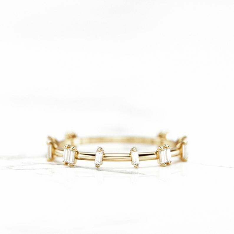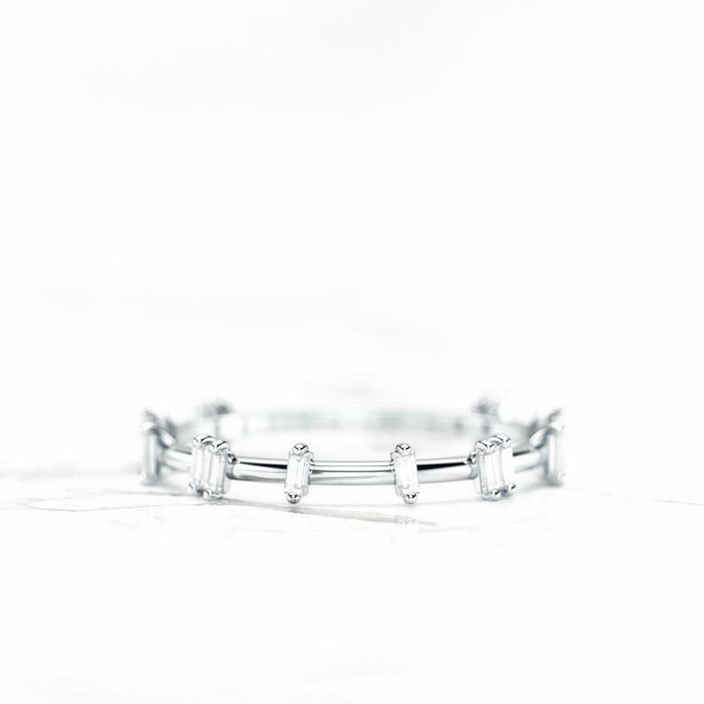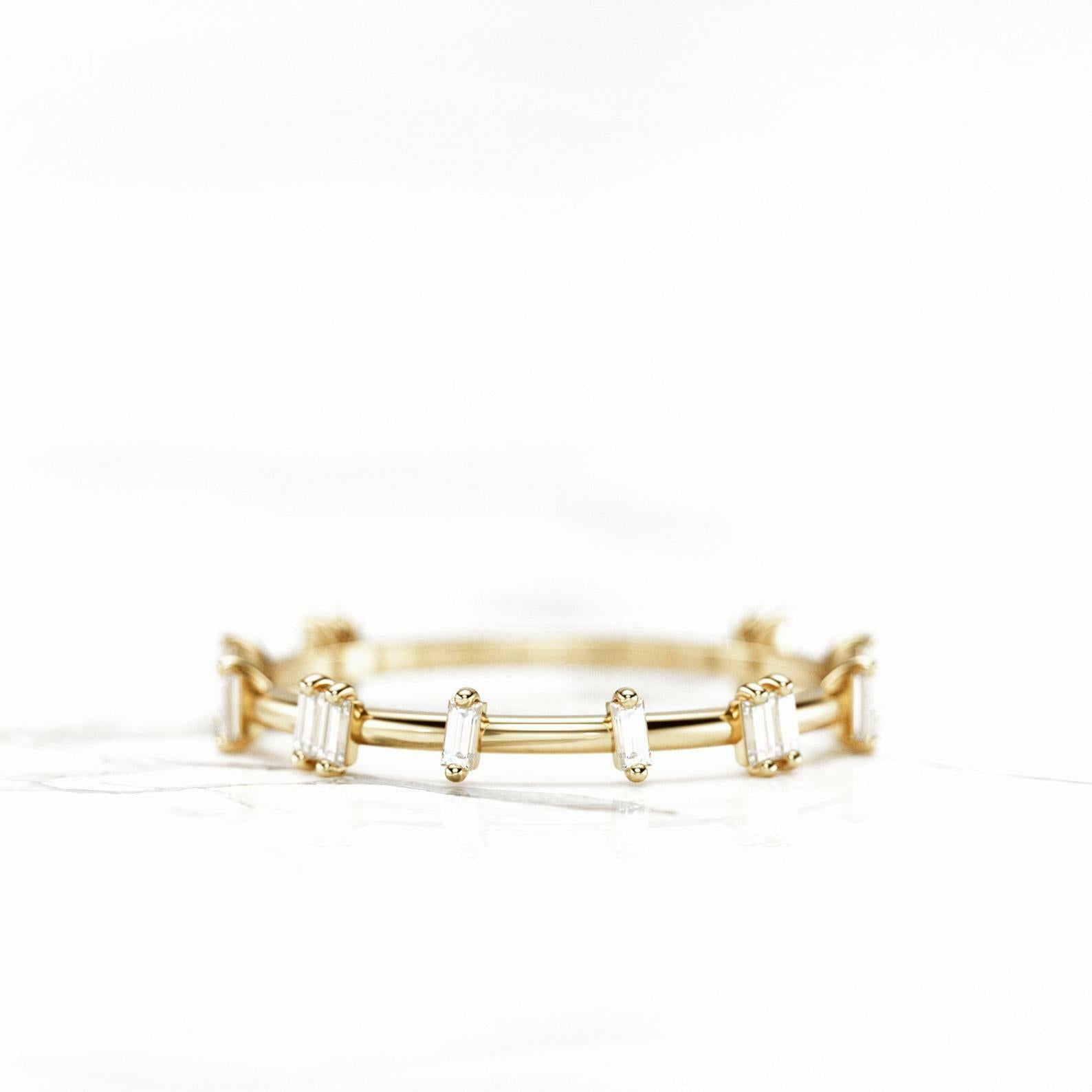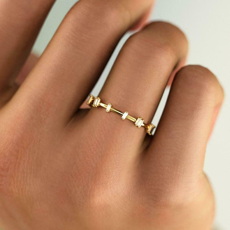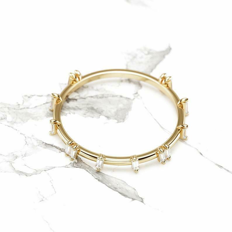 Unique Stackable Wedding Band 0.5ct Baguette Cut Diamond 14k Yellow Gold Finish