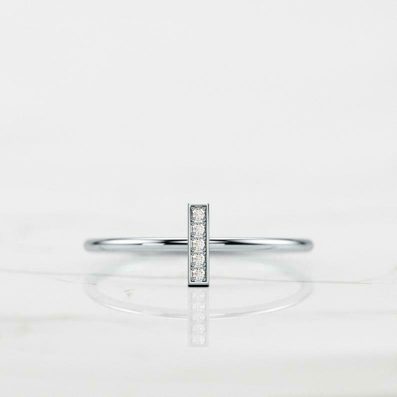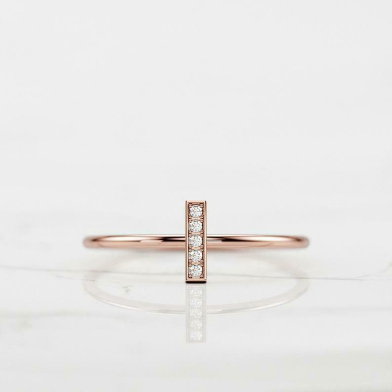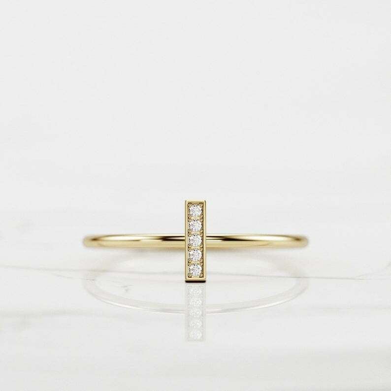 Vertical Bar Women Engagement Ring 0.6ct Round Cut Diamond 14k Yellow Gold Finish