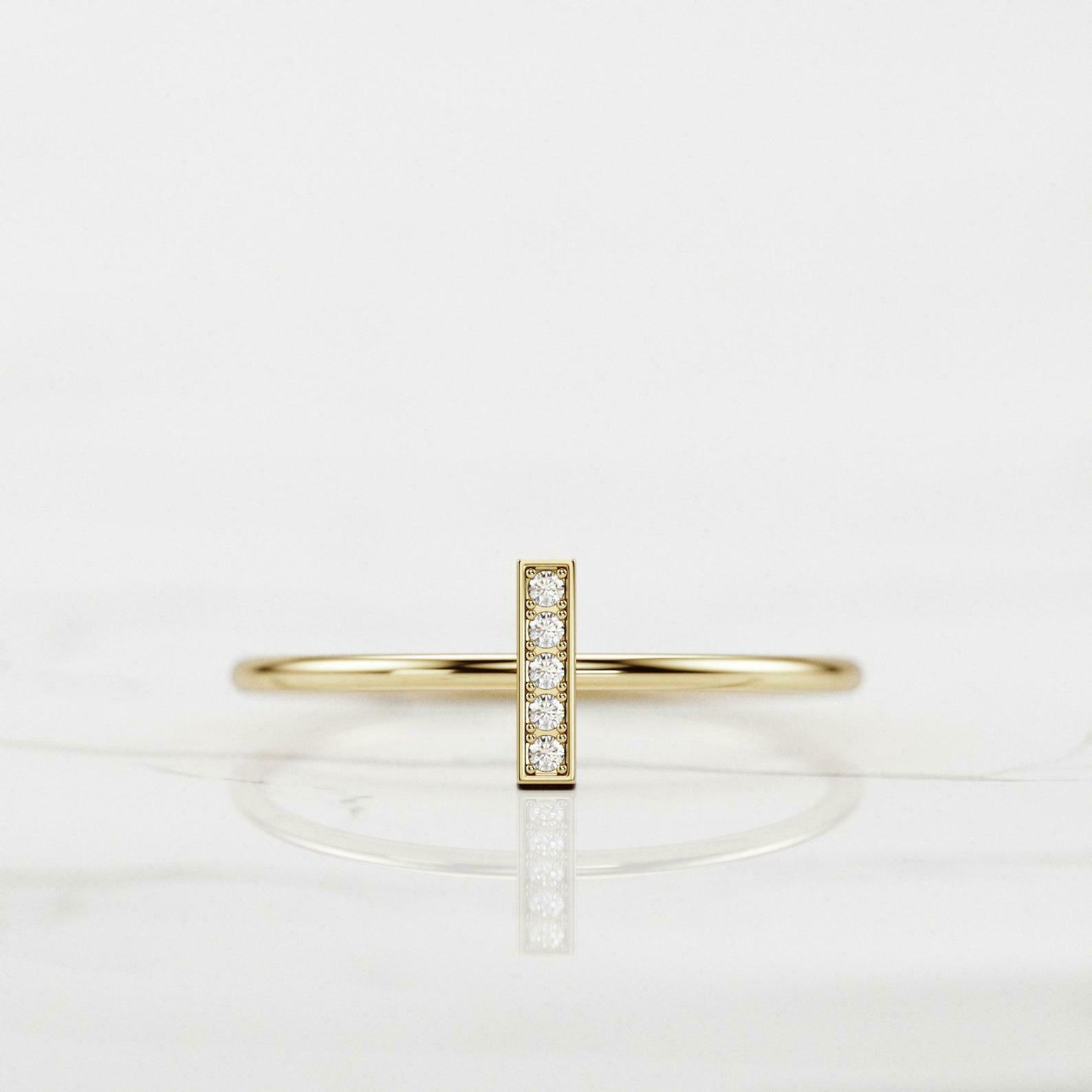 Vertical Bar Women Engagement Ring 0.6ct Round Cut Diamond 14k YellowGold Finish