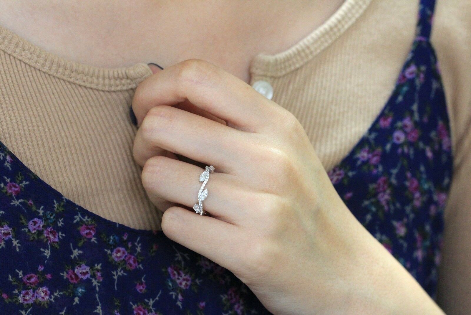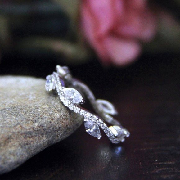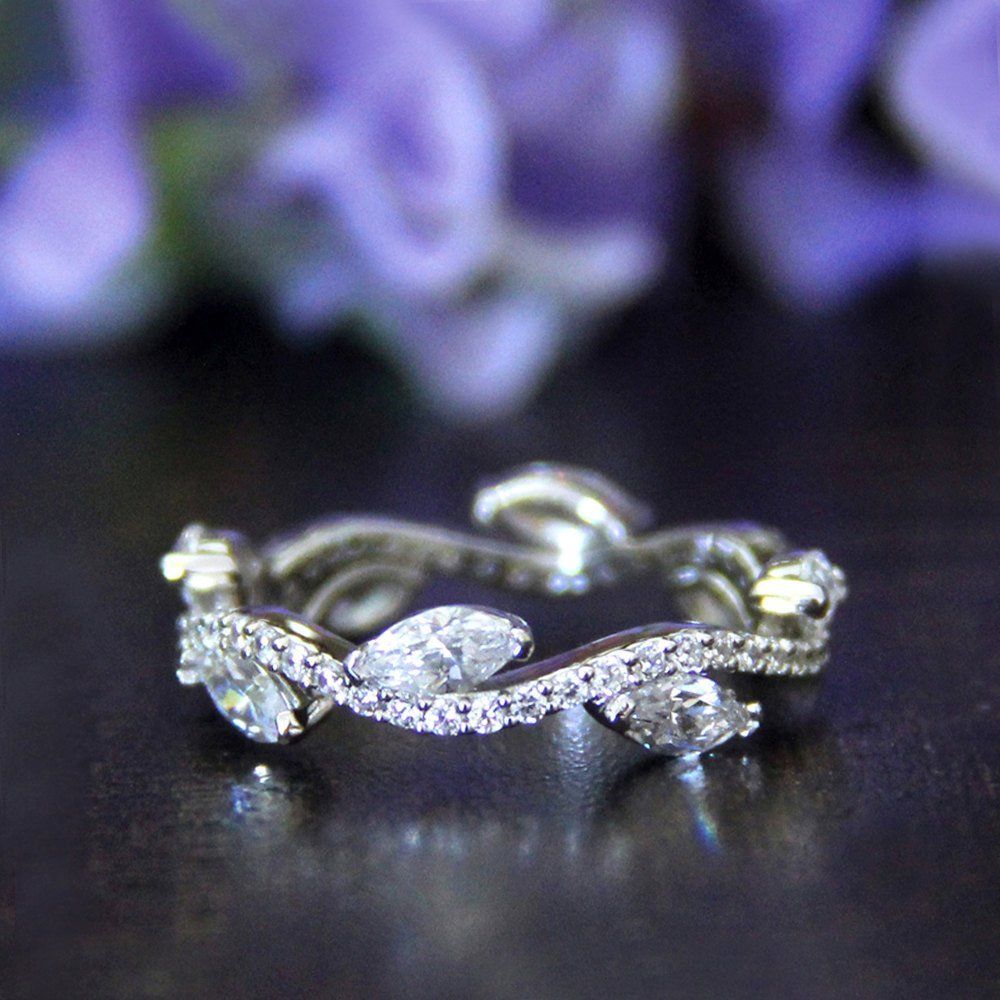 Vine Eternity Wedding Ring Band 0.5ct Marquise Cut Diamond 14k White Gold Finish
