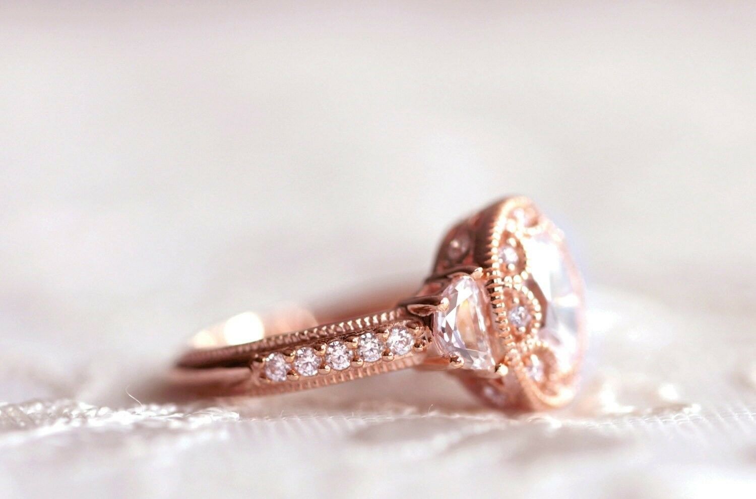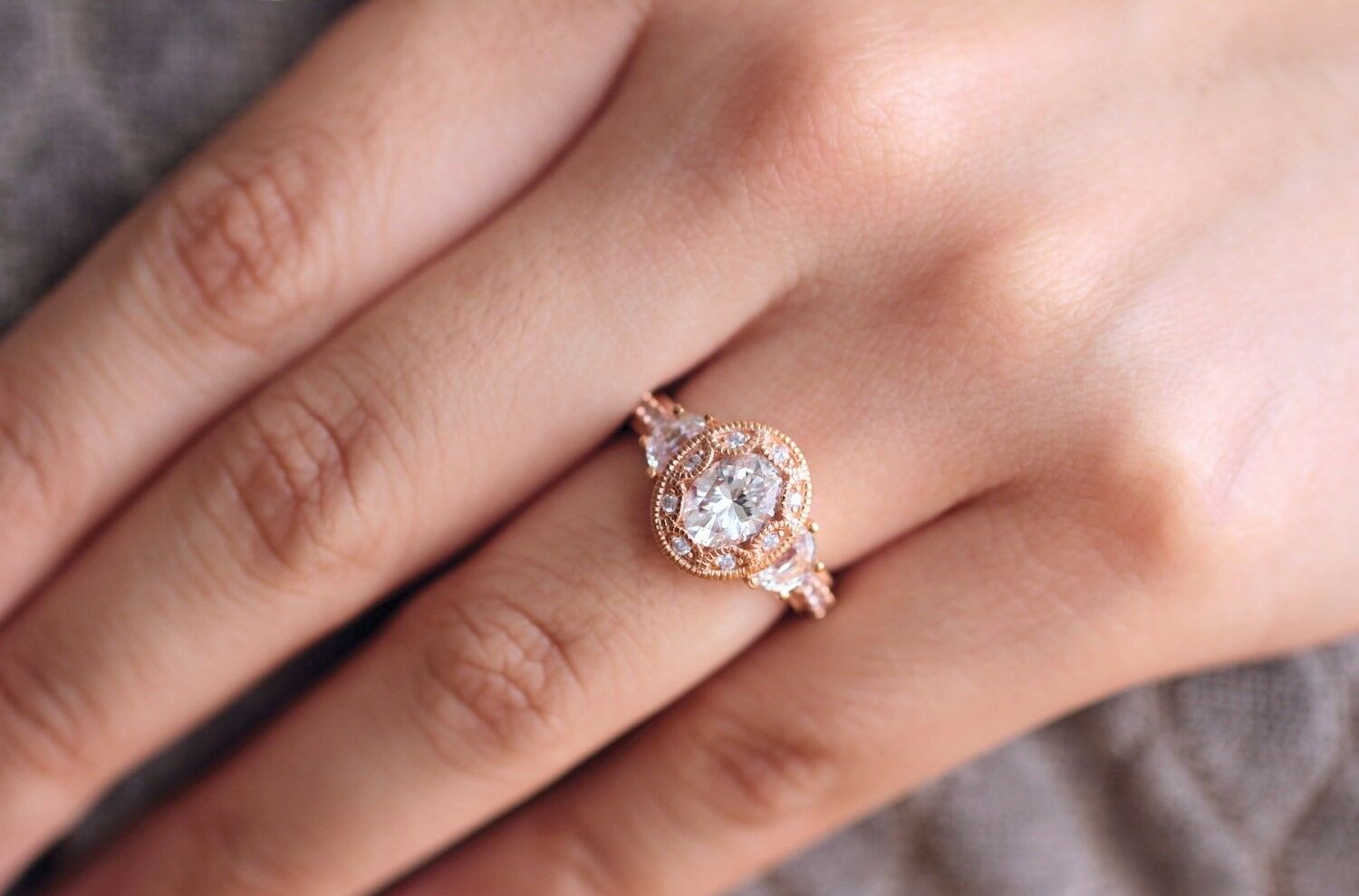 Vintage Art Deco Engagement Ring 1ct Oval Cut VVS1D Diamond 14k Rose Gold Finish