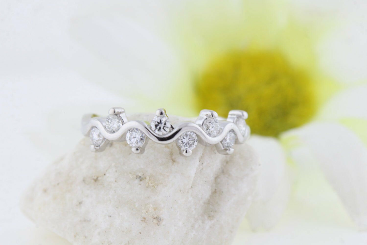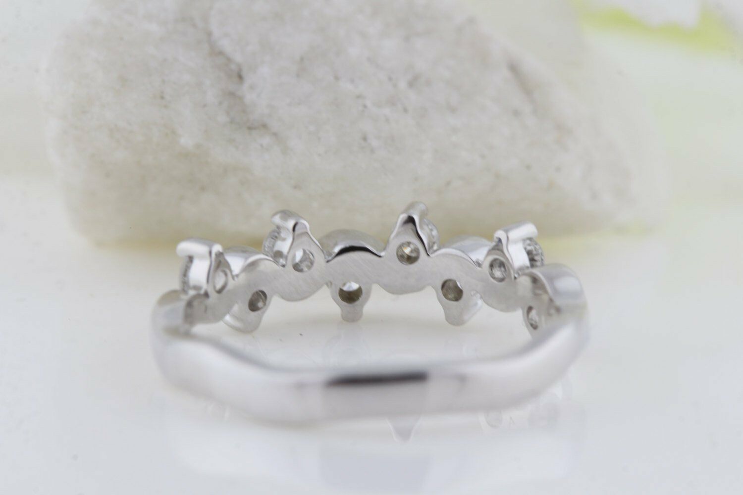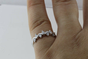 Wavy Curved Wedding Ring Band 0.3ct Round Cut VVS1 Diamond 14k White Gold Finish